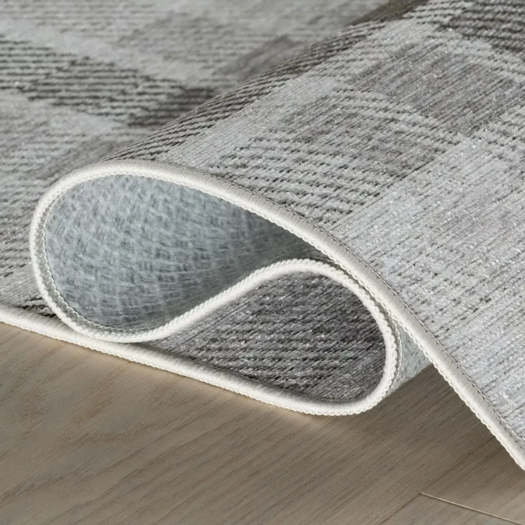 A modern plaid pattern is brought to life on this synthetic rug. Its washable, easy-to-clean construction makes it a practical and stylish choice for adding a cozy, contemporary feel to any room.