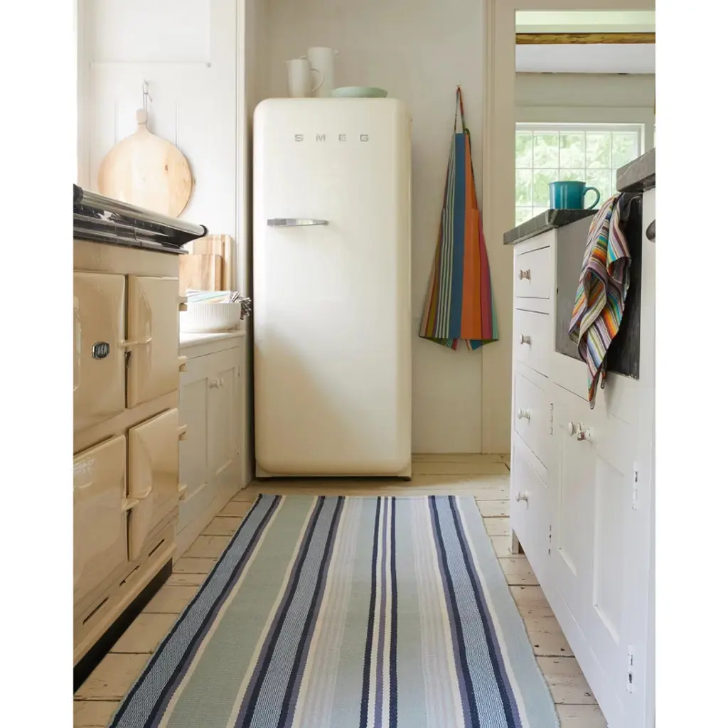 Aquatic shades of blues and greens evoke dreamy tropical waters in this island-style striped, low profile cotton rug. Soft underfoot, reversible and easy on your pocket, our bestselling flatweave cotton rugs are renowned for their versatility, affordability, and durable construction.