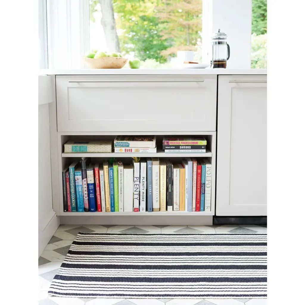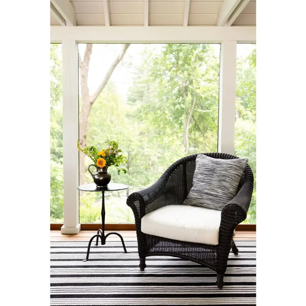 Get the best of both worlds with this durable, washable, and eco-friendly indoor/outdoor rug in a classic black and ivory stripe. Blends beautifully into both traditional and modern spaces.