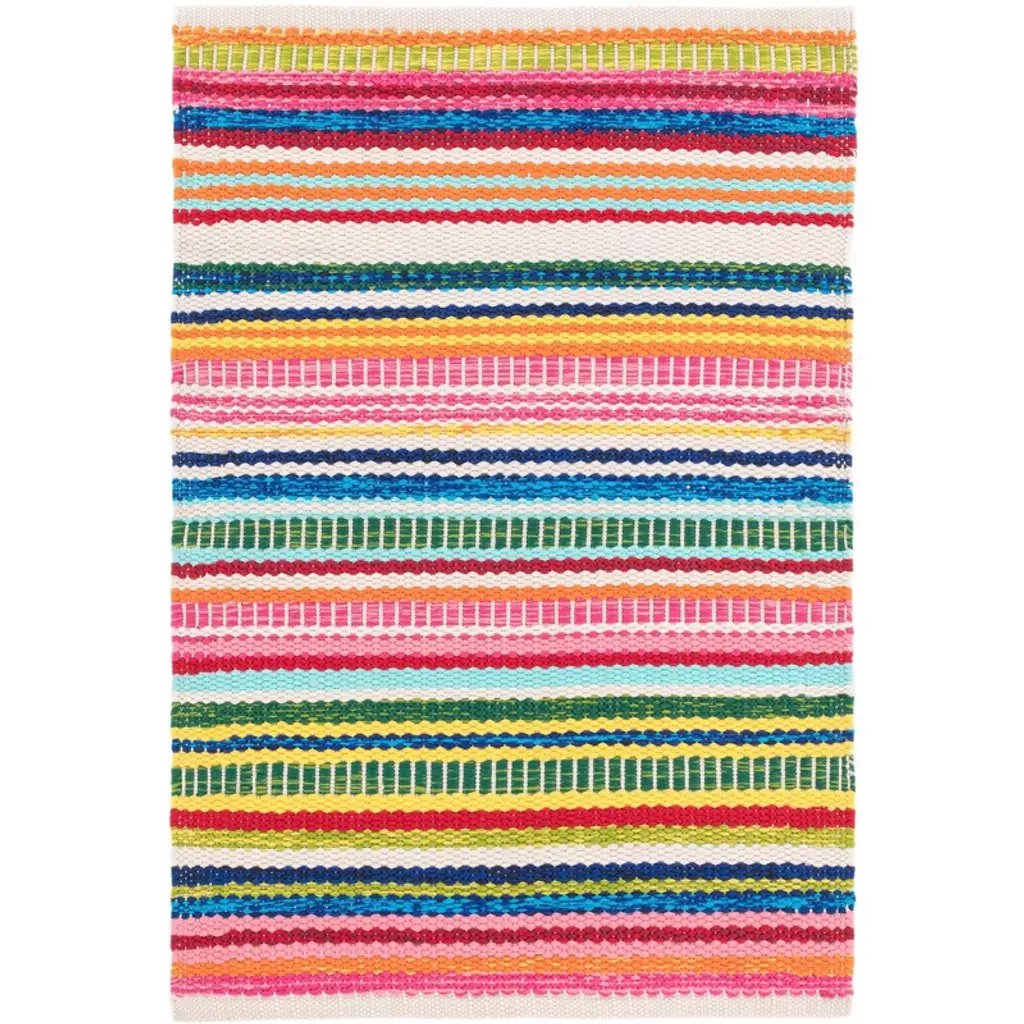 The Bright Stripe Handwoven Indoor/Outdoor Rug is a fun, fresh, and colorful indoor/outdoor rug. This rug is lightweight, durable, and washable, making it the perfect solution for high-traffic areas such as kitchens, mudrooms, family rooms, playrooms, or patios.