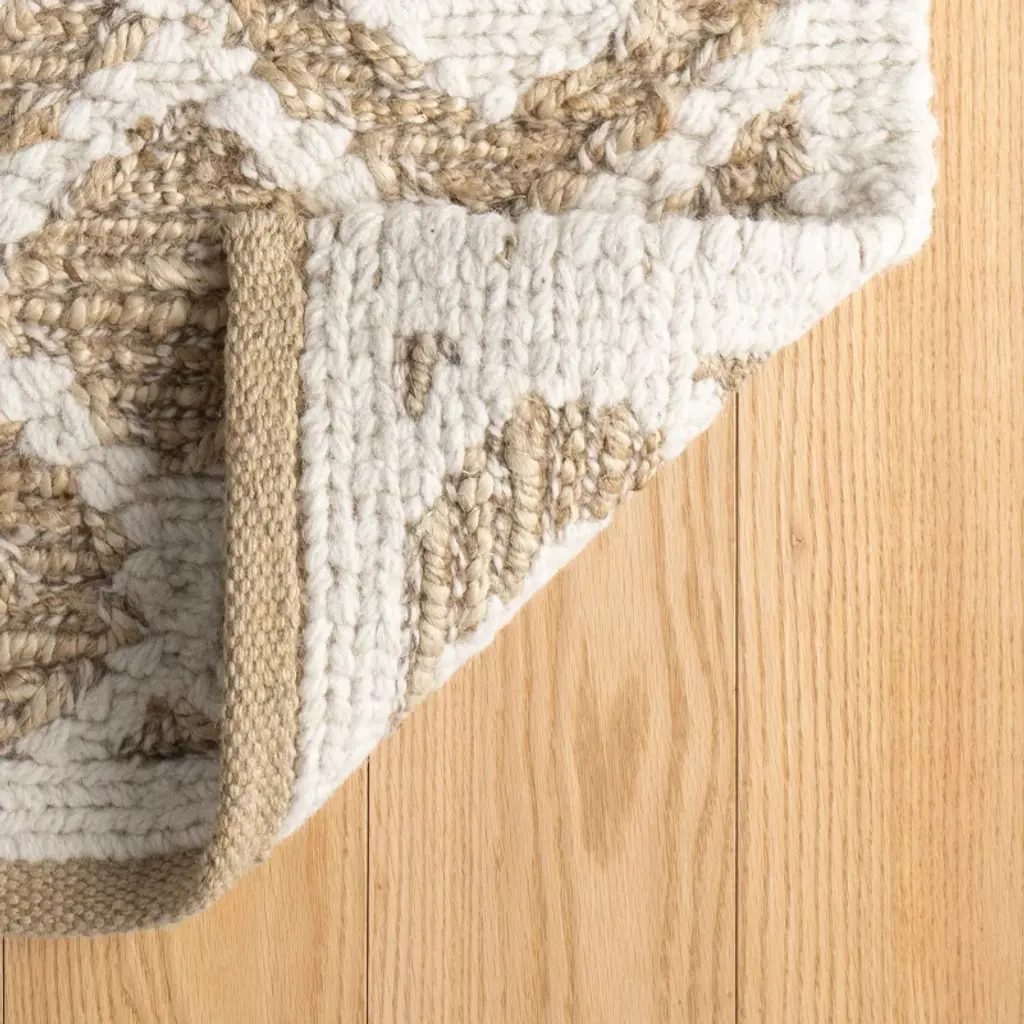 Soft, durable and highly textured in jute and wool. Soumak weaving adds texture, strength and dimension by wrapping each warp yarn with the weft, a technique that can only be done by hand. The pattern of this rug is has added definition through the outline of both color and texture, creating a compelling visual organic statement for the modern interior.
