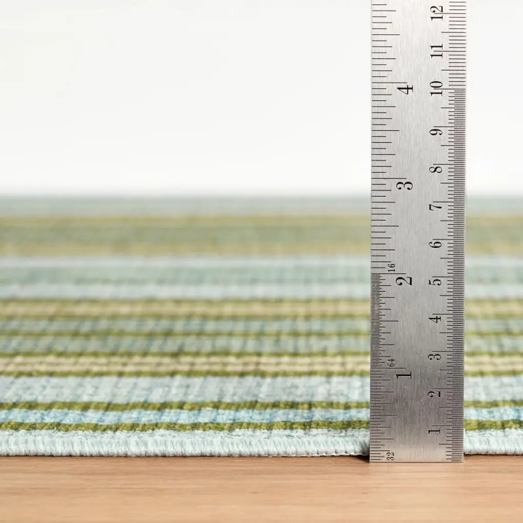 Part of our best-in-class collection of design-focused, machine-washable rugs. With a winning combination of blue and green stripes, this superior-quality, machine-washable rug is versatile enough to use in any room where a bold pop of color, an eye-catching pattern, and a durable foundation is needed. Great for homes with pets and high-traffic areas like entryways, mudrooms, and kitchens.