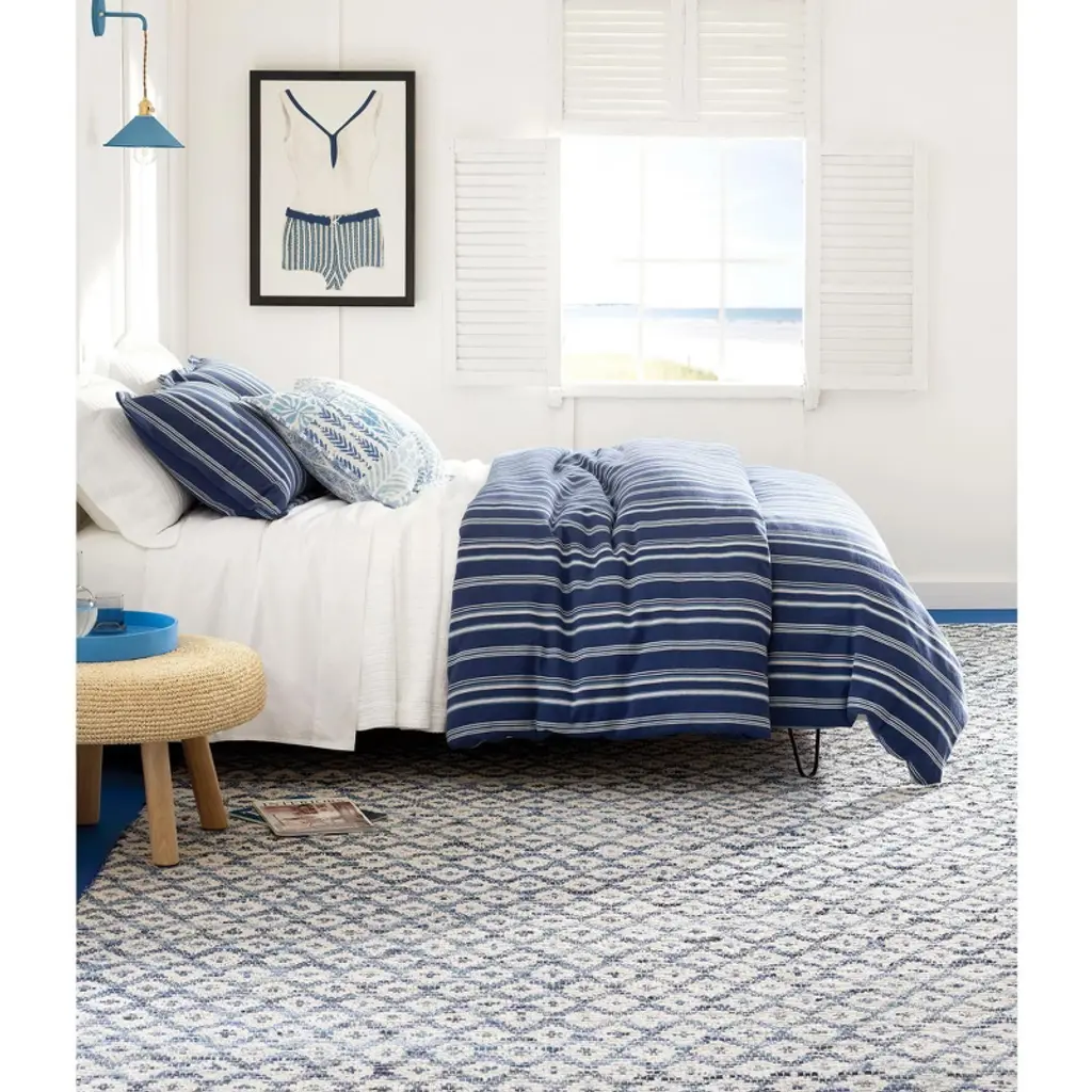 Our design team revamped our bestselling cotton denim rag rug with an inky indigo overlay adding modern geometric structure to a casual and worthy base, handwoven from strips of your favorite jeans.
