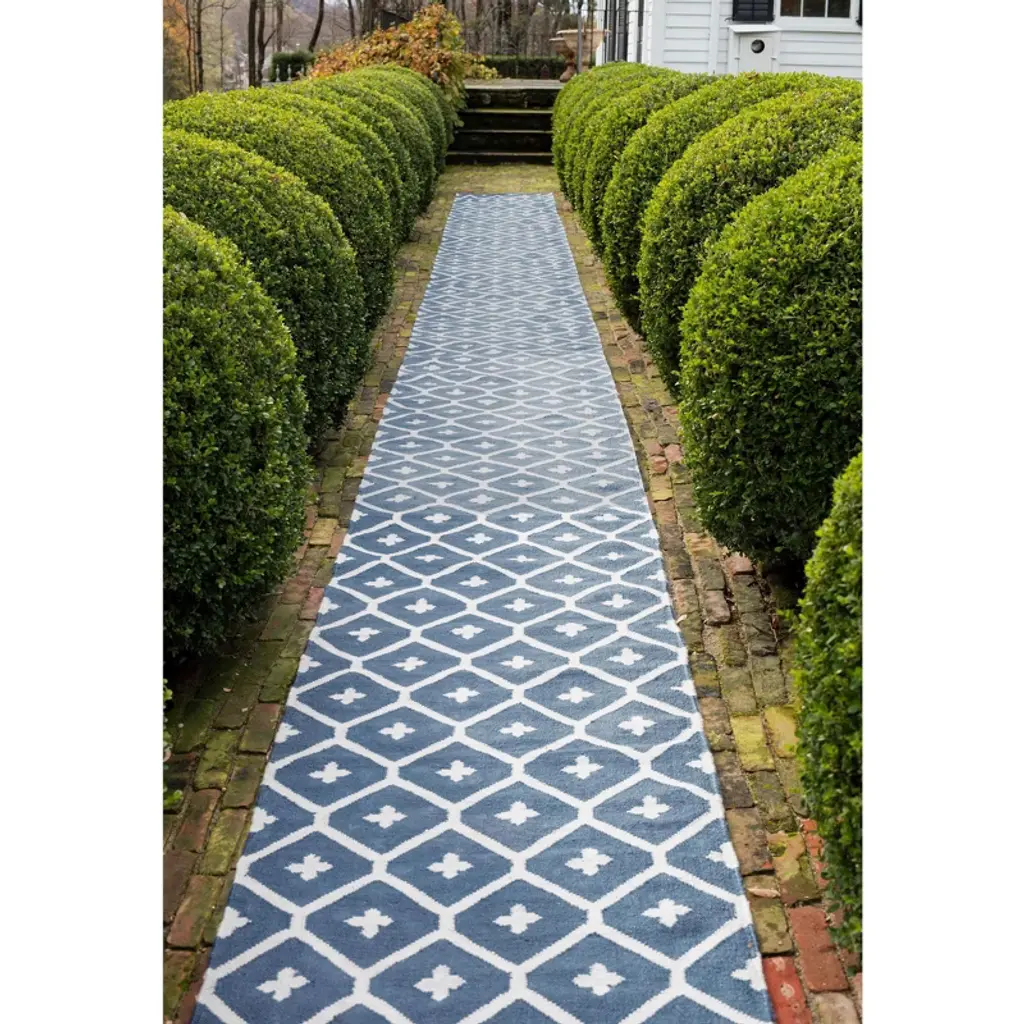 A bold, attention-grabbing vintage pattern gets an update in a durable indoor/outdoor weave and versatile duotone color combos. Due to the handmade nature, variations in color are expected.Made of 100% PET, a polyester fiber made from recycled plastic bottles.