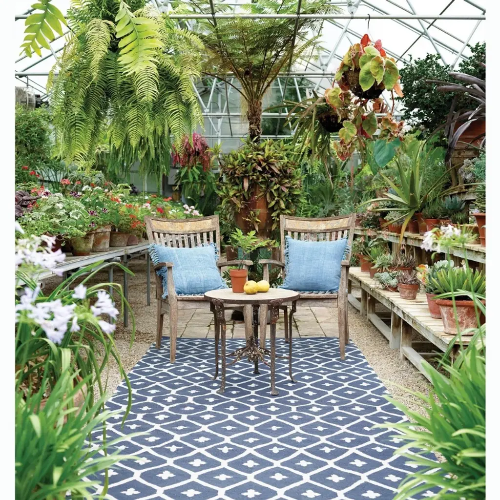 A bold, attention-grabbing vintage pattern gets an update in a durable indoor/outdoor weave and versatile duotone color combos. Due to the handmade nature, variations in color are expected.Made of 100% PET, a polyester fiber made from recycled plastic bottles.