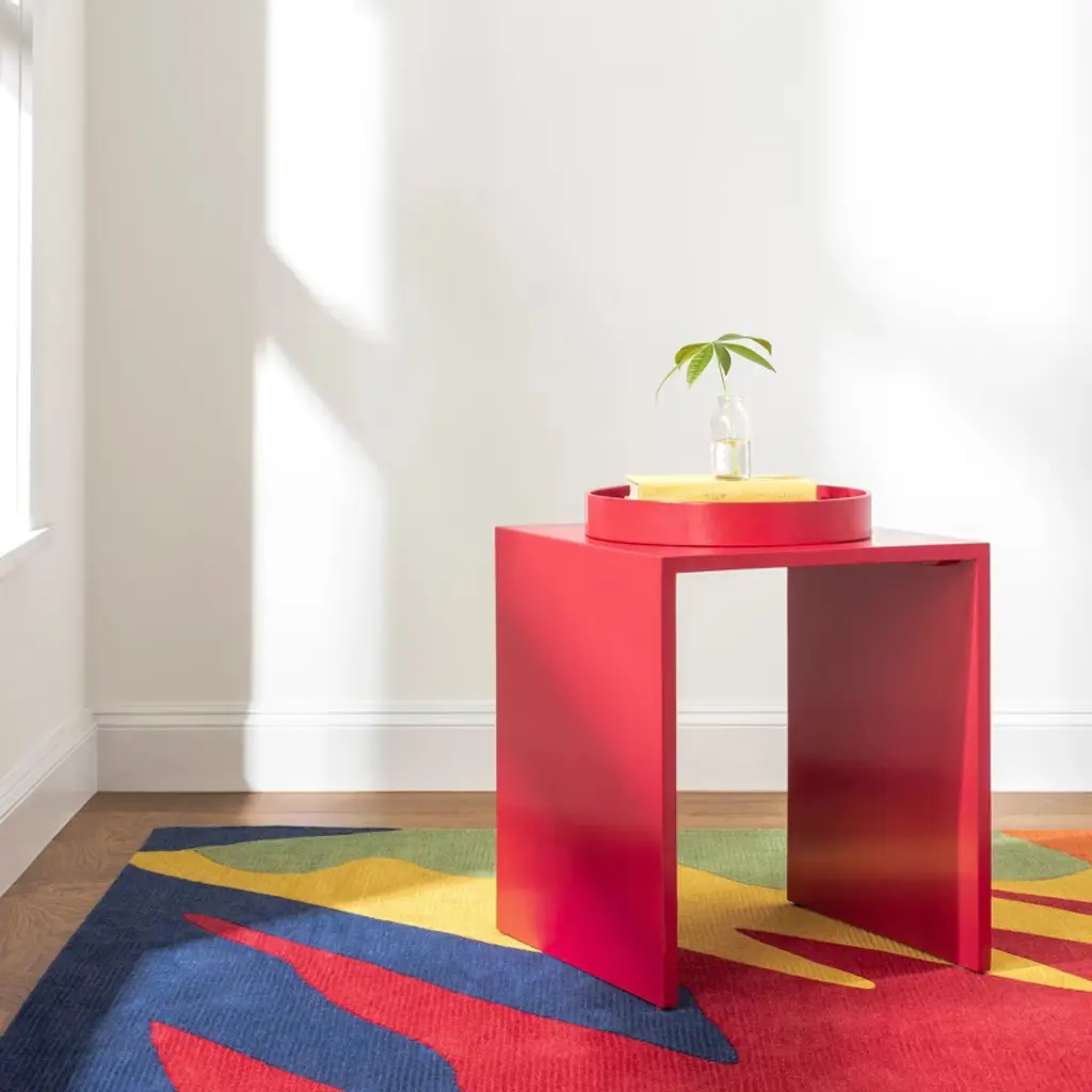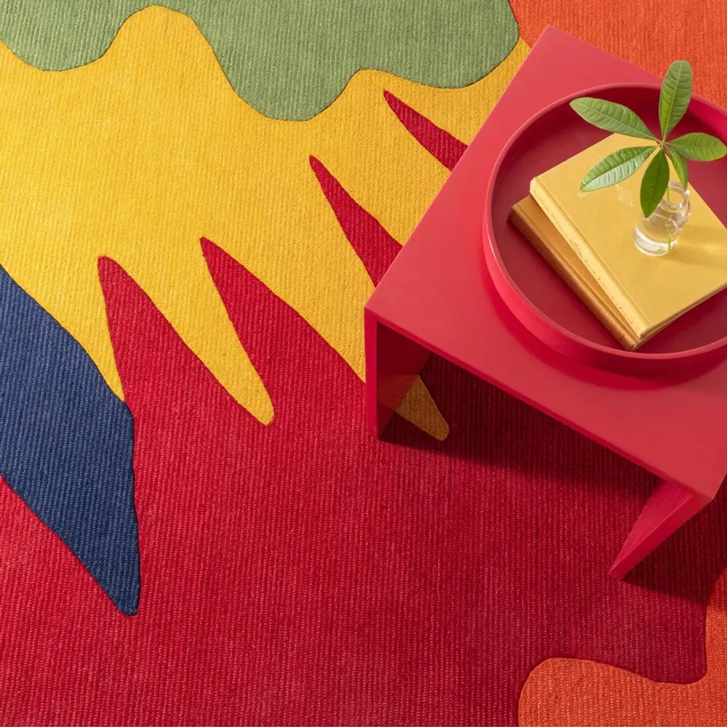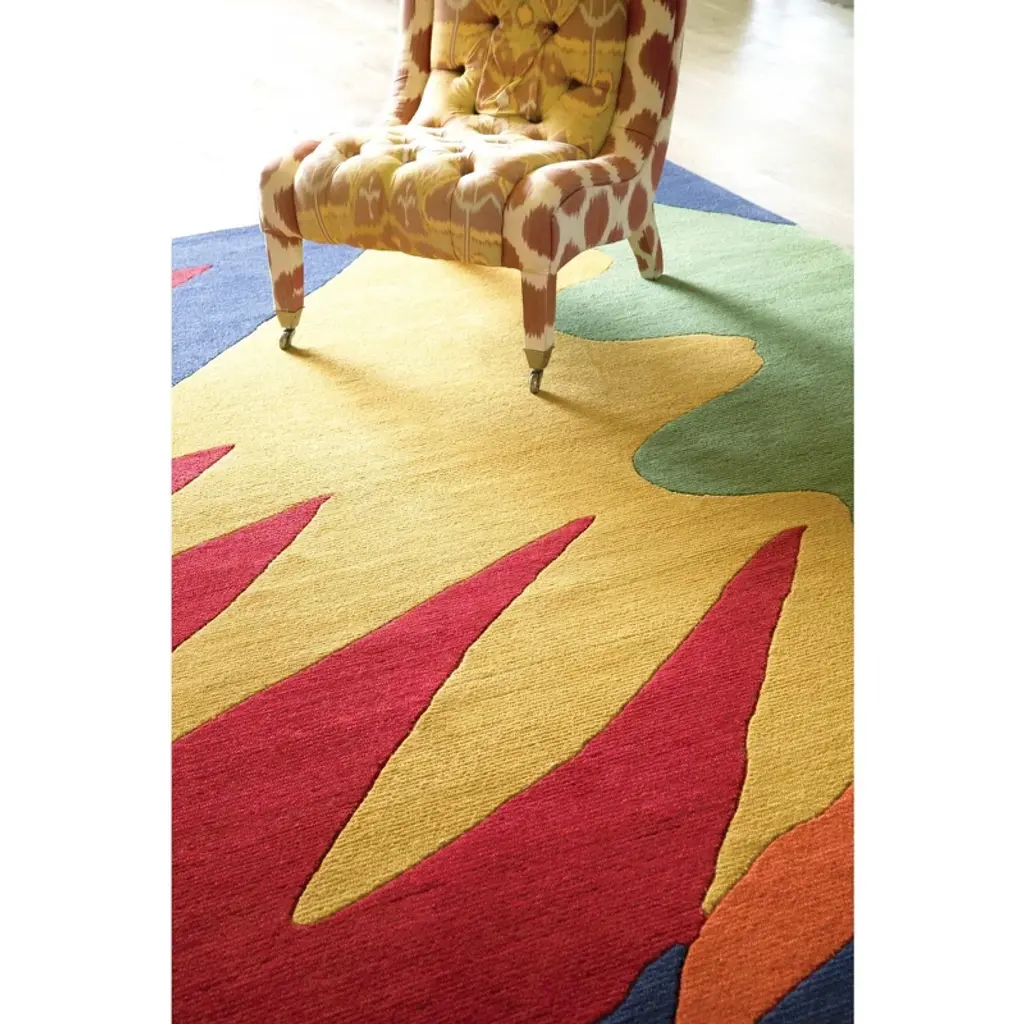 Graphic in name, and graphic in nature, this gorgeous wool tufted rug is a plush and luxurious way to say "I have arrived!". Make a statement in a hallway or foyer and be greeted by this extraordinary rug, packed with zest and excitement. The vivid geometry is crisp and defined in a riot of joyous and jubilant colors. One of the modern creations from the design collaboration between Annie and Kit Kemp, co-owner and Creative Director for Firmdale Hotels, united by their passion for colorful and carefree design, redefining contemporary Arts and Crafts for everyday life.