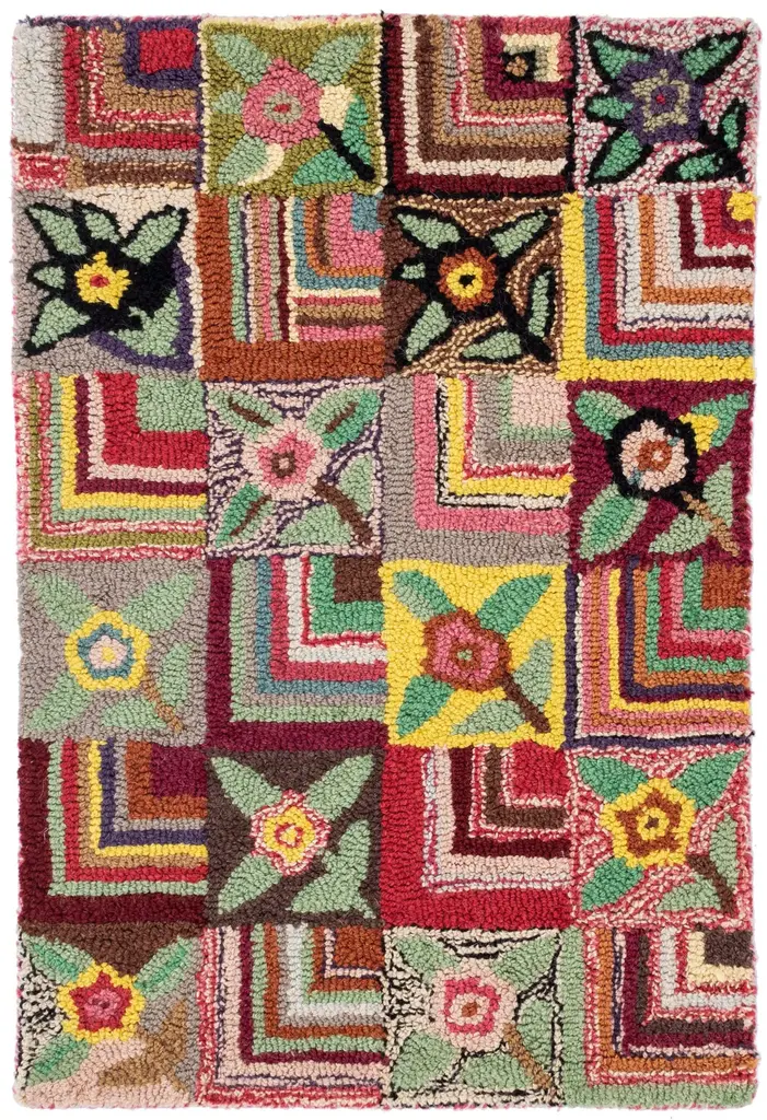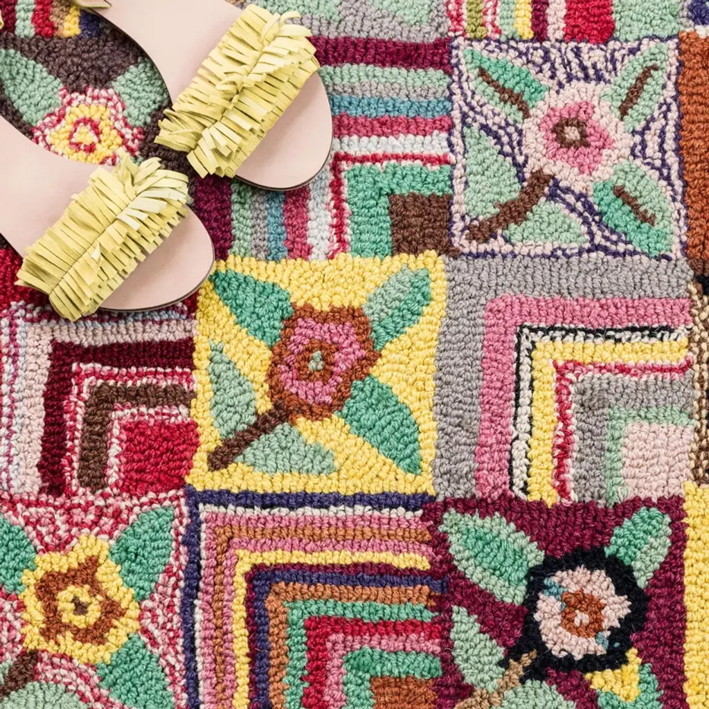 The Gypsy Rose Hand-Hooked Wool Rug features a vintage-style patchwork pattern in bright, happy hues. Soft underfoot and durable, it's ideal for medium to high-traffic areas like dining rooms, living rooms, and hallways.