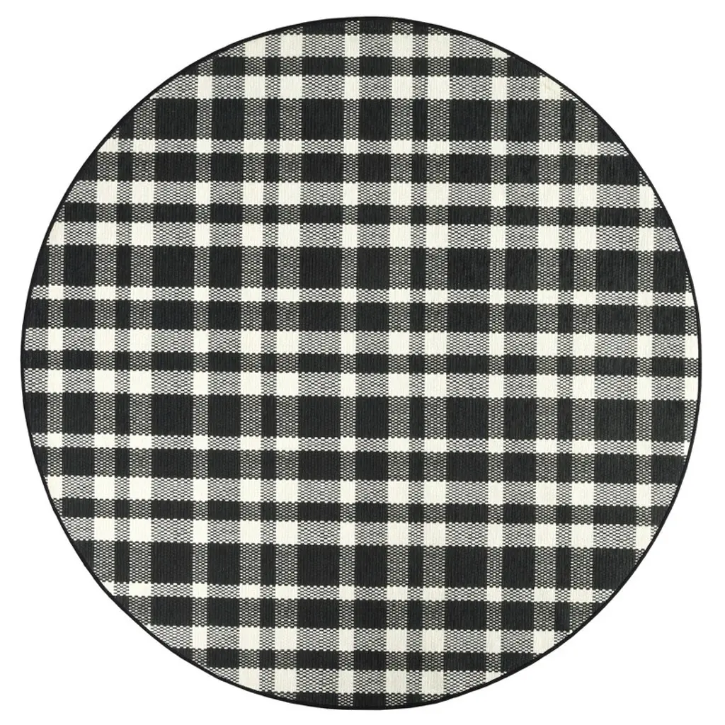 Annie Selke - Dash & Albert Houston Plaid Black Machine Washable Rug, 4' Round, Black