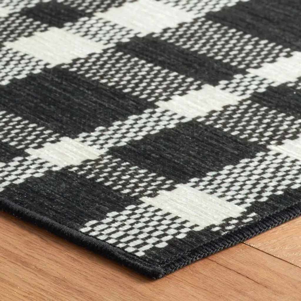 Part of our best-in-class collection of design-focused, machine-washable rugs. Monochrome tattersall makes a chic statement on this one-piece, machine-washable rug. Its superior quality means that it will lie flat and remain soft underfoot even after multiple spins in your washing machine. Spill-proof, stain-resistant, and low-profile, our machine-washable rugs are great for homes with pets and kids. An anti-slip backing ensures they stay put in high-traffic, water-prone areas like entryways, bathrooms, mudrooms, and kitchens.