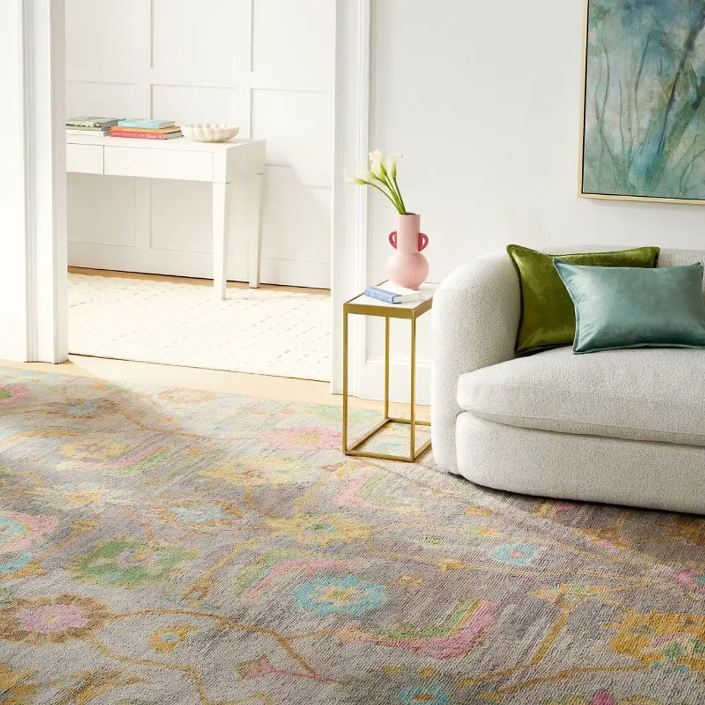 Part of our Masterpiece Collection that draws from the rich heritage of traditional, Turkish Oushak rugs. Woven and hand-knotted by master weavers in India, every detail – from the intricate motifs down to the finest yarn – speaks to the unparalleled quality and artisan craftsmanship of these vintage-inspired rugs. The classic Oushak gets a colorful, Annie Selke twist with the Iris Multi Hand Knotted Wool Rug. Set against a sophisticated grey backdrop, vibrant pops of yellow, blue, and pink make this rug truly eye-catching. The intricate design showcases an unmatched level of quality and craftsmanship, while the lush surface provides luxurious softness underfoot.
