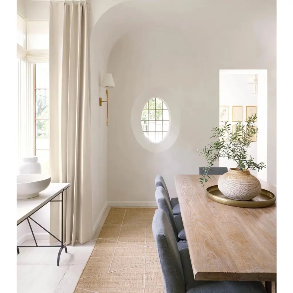 Promote a relaxed sensibility with mid-century flair. This gorgeous flatwoven rug, hand-loomed from slubby, naturally colored jute makes a bold and sustainable statement that's punctuated with a random, large-scale geometry of cotton embroidery. Designed for us by Marie Flanigan, an award-winning interior designer, to reflect her signature style of timeless elegance and innovative simplicity.
