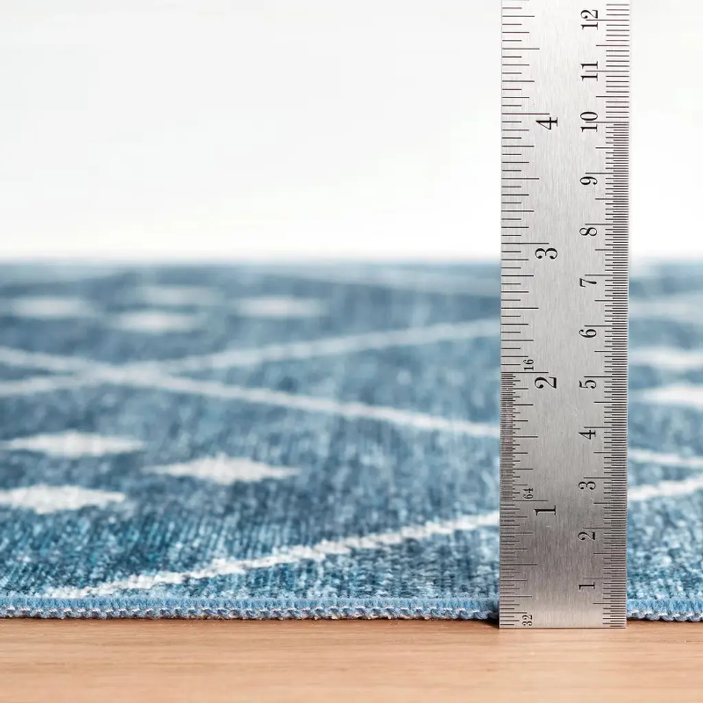 Part of our best-in-class collection of design-focused, machine-washable rugs. A longtime customer favorite, our Kota Indigo Handwoven Rug is now available in a machine-washable version. Crisscrossed with a natural diamond grid, this rug boasts a southwestern flair that can truly go anywhere but works especially well in busy spaces like entryways, mudrooms, and kitchens.