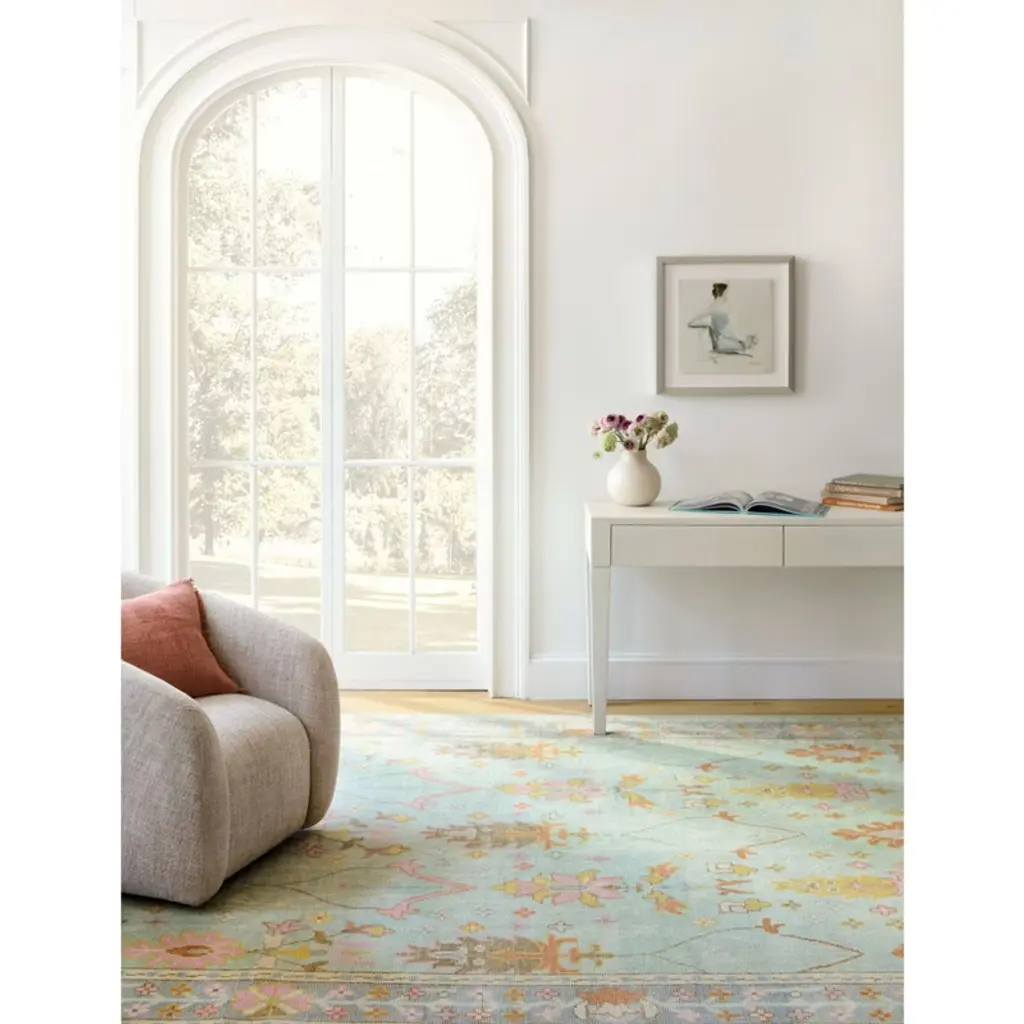 Part of our Masterpiece Collection that draws from the rich heritage of traditional, Turkish Oushak rugs. Woven and hand-knotted by master weavers in India, every detail – from the intricate motifs down to the finest yarn – speaks to the unparalleled quality and artisan craftsmanship of these vintage-inspired rugs. With its elegant, botanical design and palette of soft blues and pretty pinks, our Mara Sky Hand Knotted Wool Rug is as enduring as it is beautiful. Incredibly soft and plush underfoot, this versatile piece will ground any space, adding a touch of sophisticated charm and a welcome splash of subtle color.