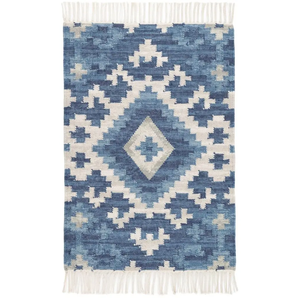 Annie Selke - Dash & Albert Marmara Kilim Handwoven Cotton Rug, 9X12, Blue