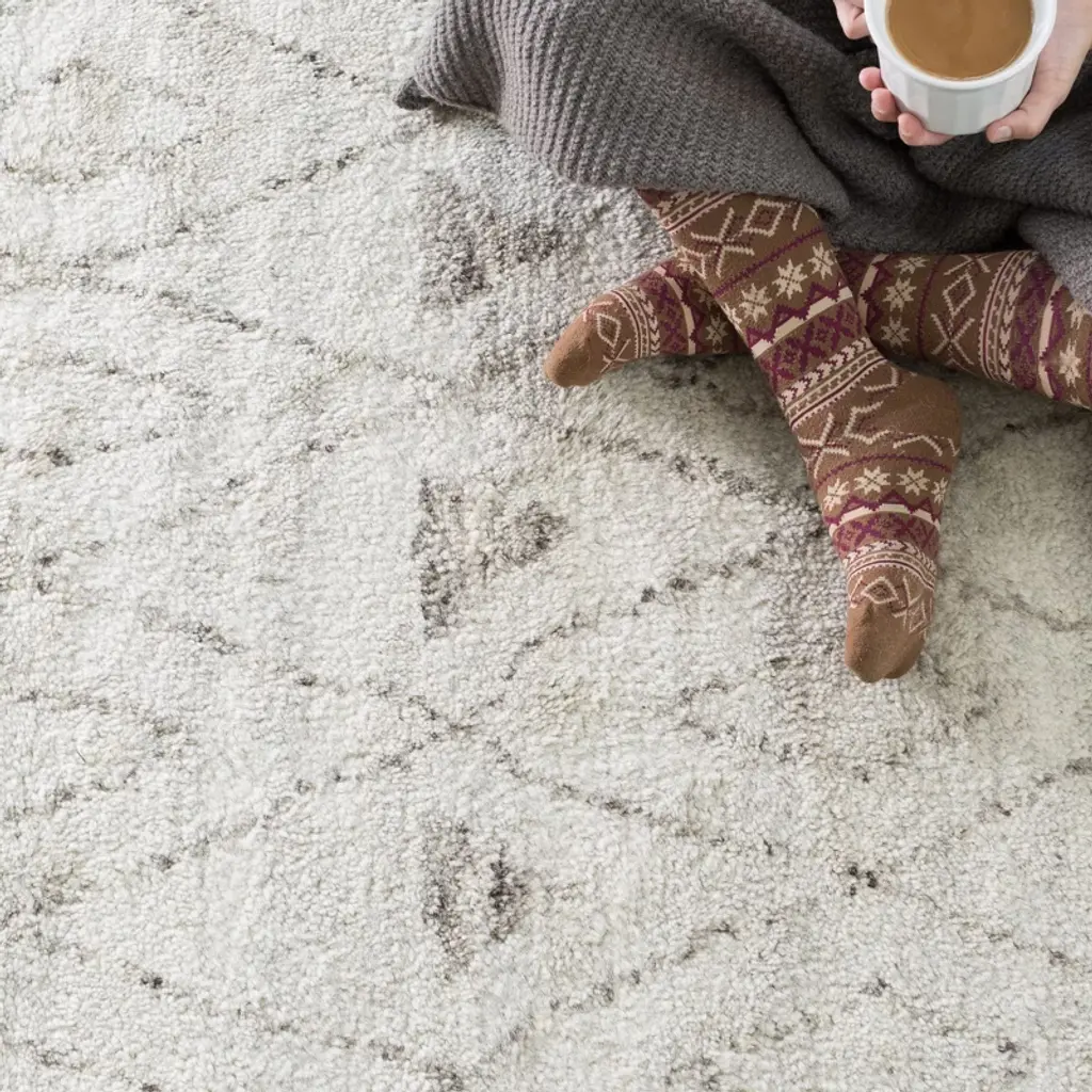 The Moroccan-inspired Masinissa Hand-Knotted Wool Rug is soft and dense with a subtle geometric pattern. This plush rug provides maximum comfort and takes center stage in living rooms, dining rooms and master bedrooms.