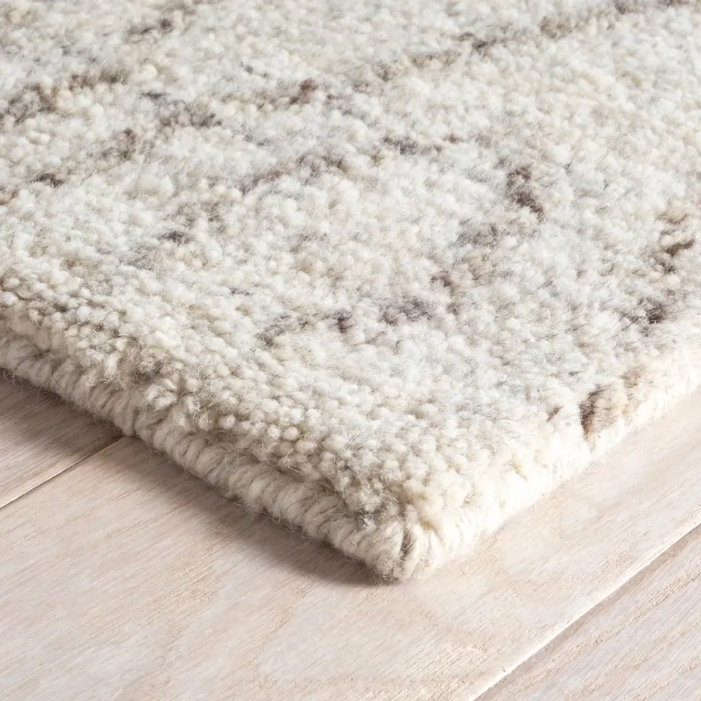 The Moroccan-inspired Masinissa Hand-Knotted Wool Rug is soft and dense with a subtle geometric pattern. This plush rug provides maximum comfort and takes center stage in living rooms, dining rooms and master bedrooms.