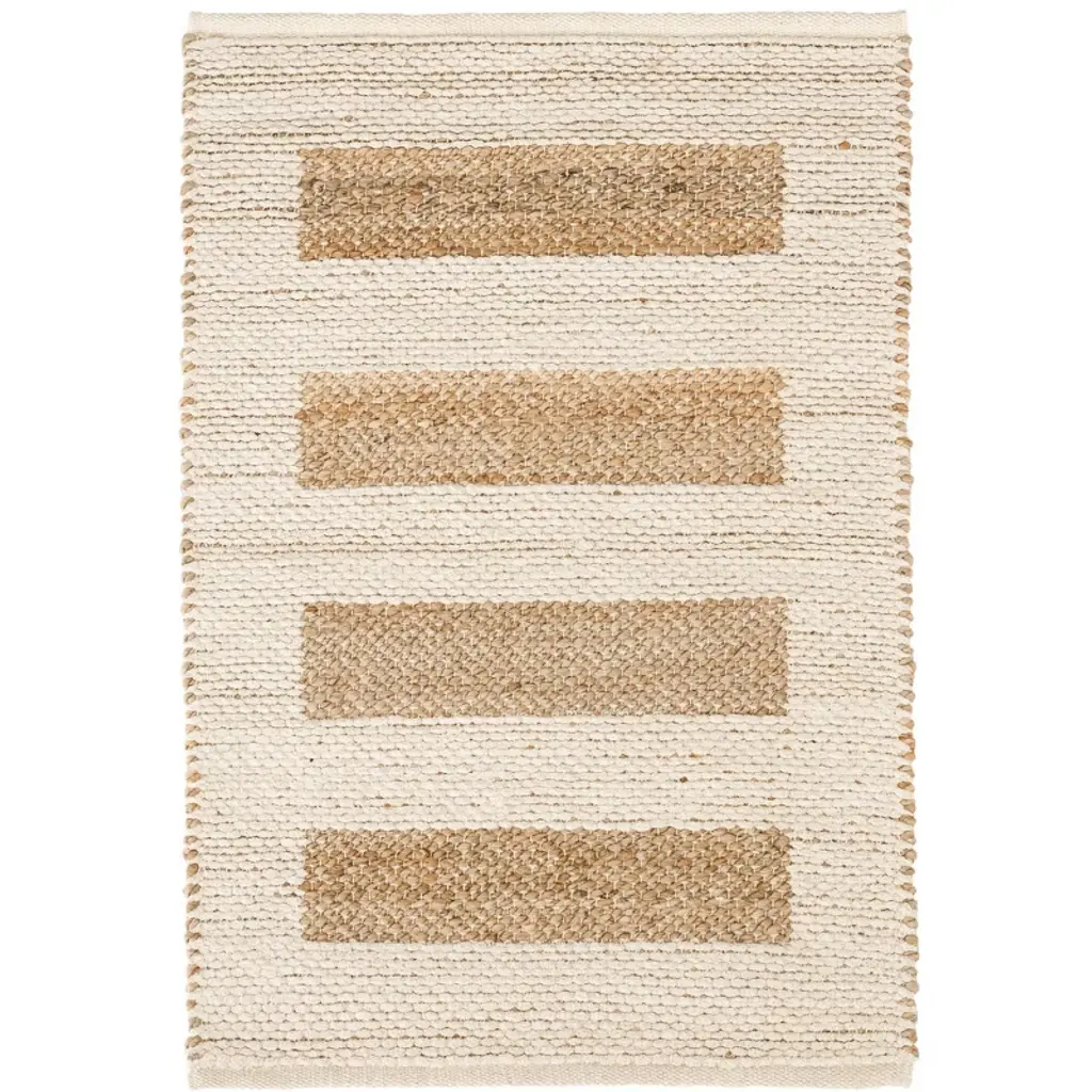 Sand bars of natural jute appear to float on a marled slubby cotton ground. Cool and crisp underfoot, jute and chenille cotton blend together in perfect synergy for hardworking comfort and style.