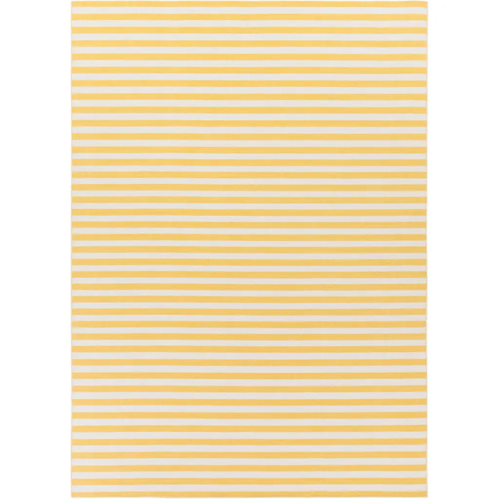Part of our best-in-class collection of design-focused, machine-washable rugs. Inspired by the colors of the Mediterranean, this machine-washable rug features a mix of sunny yellow stripes equally at home in modern, farmhouse, coastal, or traditional rooms, wherever you need a stylish, easy-to-clean, durable rug option. Its superior quality means it lies flat and remains soft underfoot with no shedding or fuzzing, even after multiple washes.