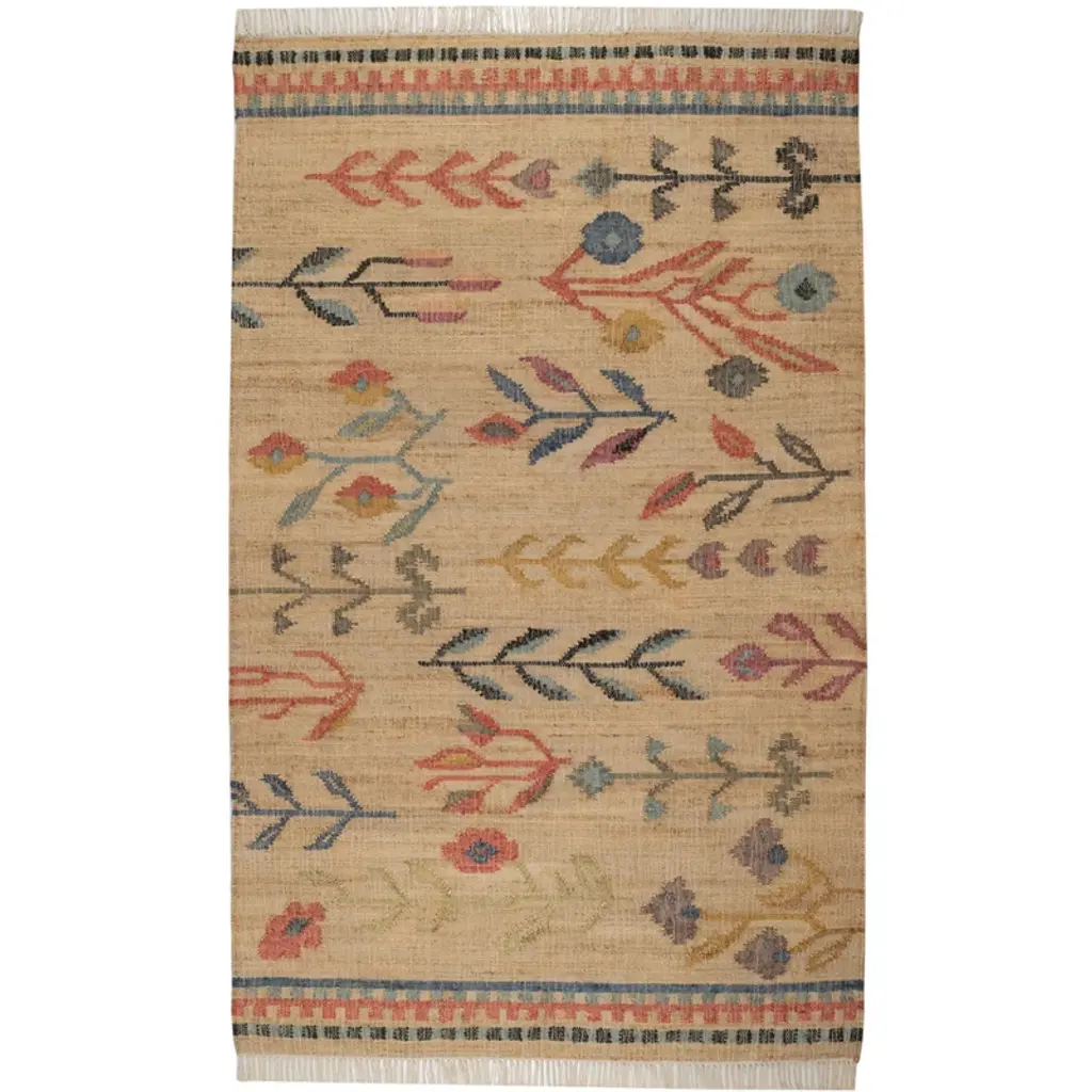 Annie Selke Folk Floral Kilim Handwoven Jute Rug, 6' X 9', Natural