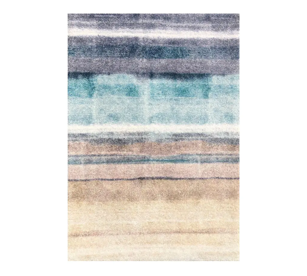 A transitional abstract design is brought to life on this synthetic rug. Its washable, easy-to-clean construction makes it a practical and stylish choice for adding a touch of modern art to any room.