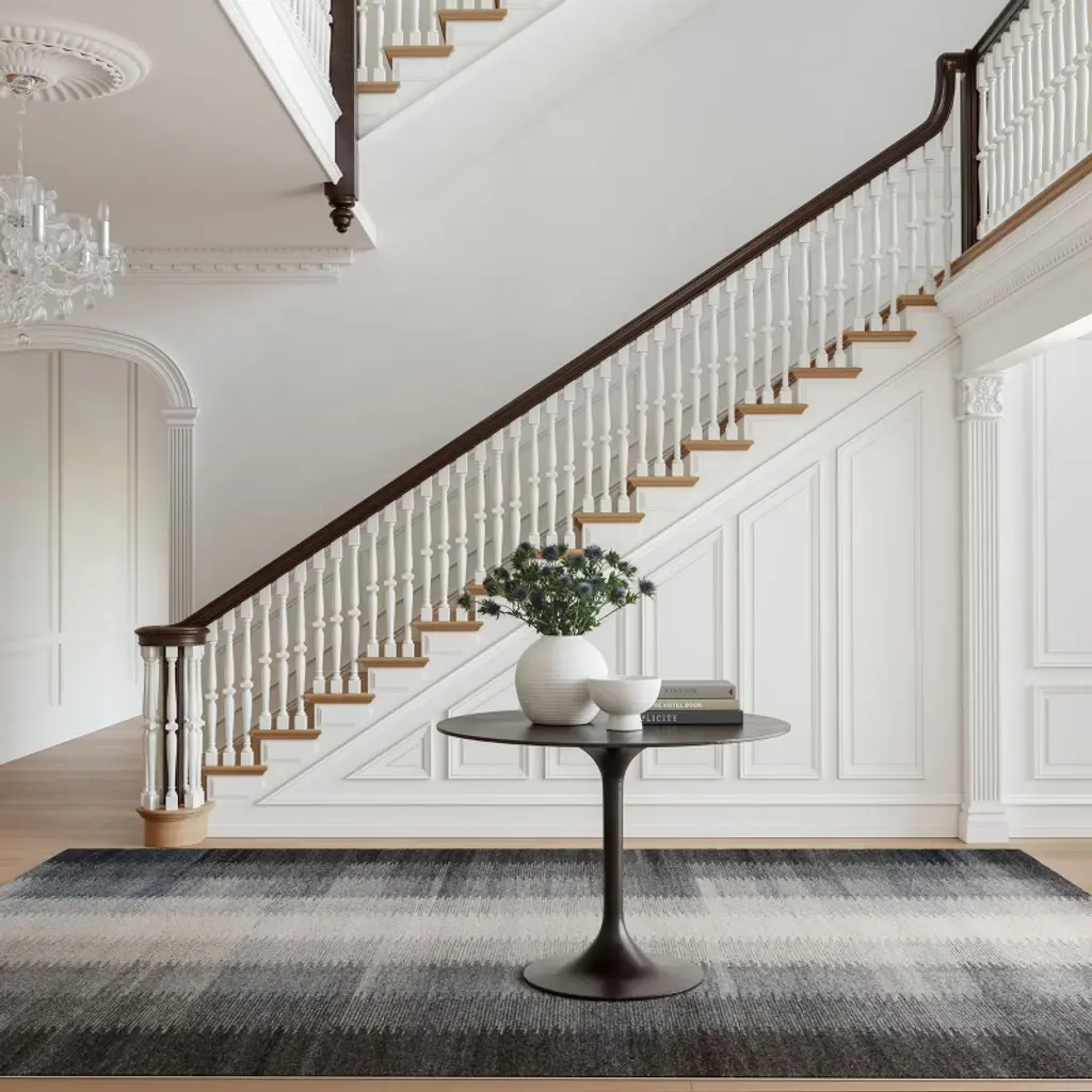 This modern striped synthetic rug adds a touch of contemporary style to your home. Its washable, easy-to-clean construction makes it a practical and stylish choice for any room.