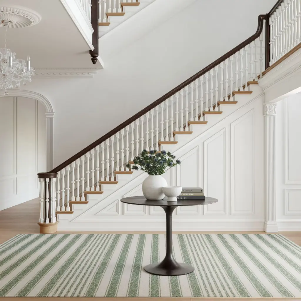 Infuse your home with a fresh, breezy feel with this striped synthetic rug. The durable and washable construction makes it a smart choice for high-traffic areas, combining coastal style with easy maintenance.