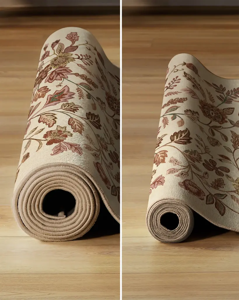 Embrace change—or at least the changing of the seasons with the Anonna Burgundy Multicolor Rug. This design beautifully captures the flow of autumn foliage with a combination of dusty pink, terracotta, olive green, taupes, light browns, and burgundy, along with pops of gold and light yellow on a light cream setting. Water-resistant, stain-resistant, and fully machine-washable. Colors may vary by device and lighting.