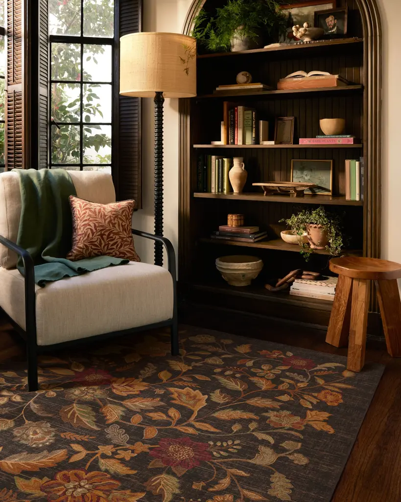 Turn a new leaf with our Anonna Dark Wood Rug. This organic design beautifully captures the flow of autumn foliage, bringing the warmth and colors of the coziest season indoors. Subtle hues of warm oranges, reds, and sages delicately blend against an earthy dark brown background. Water-resistant, stain-resistant, and machine-washable. Rug colors may vary slightly according to your device and the lighting in your space.