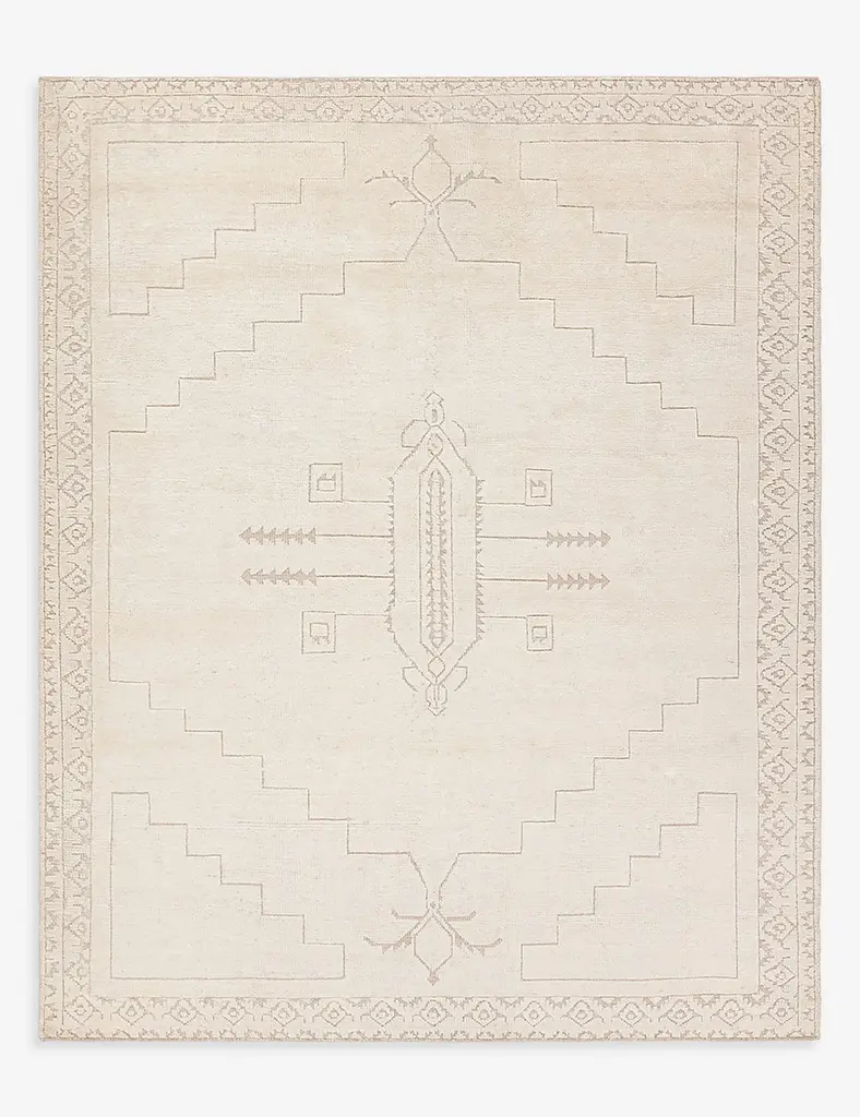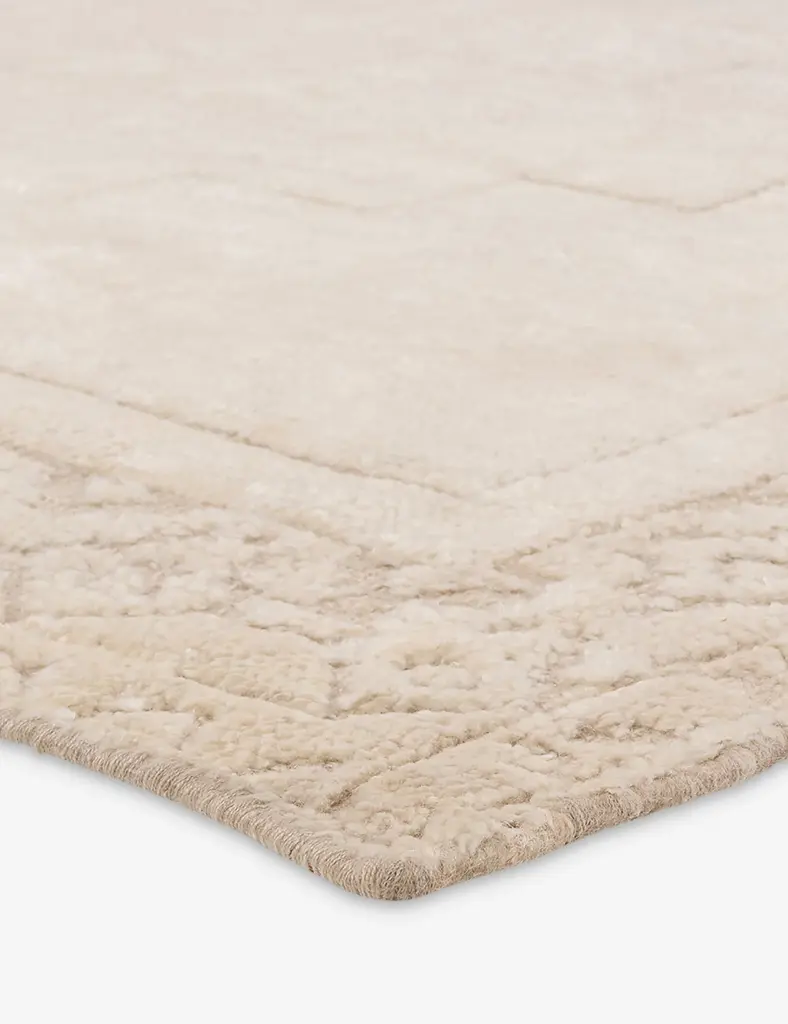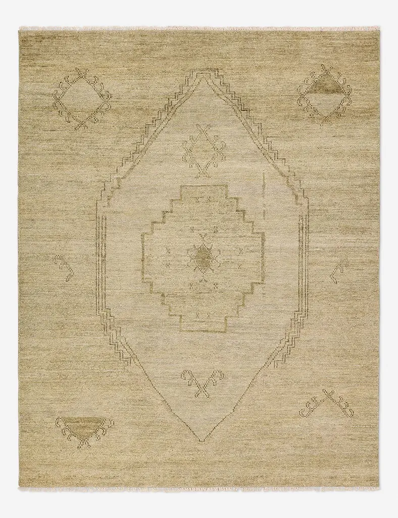 Create comfort underfoot with this beautiful hand-knotted rug. Its design is inspired by Moroccan styles, with a medallion center and geometric detailing. The hand-carded wool fibers are blended with Tencel silk for a sumptuous texture that plays great in low-traffic areas such as a formal living room or carefully curated bedroom oasis.