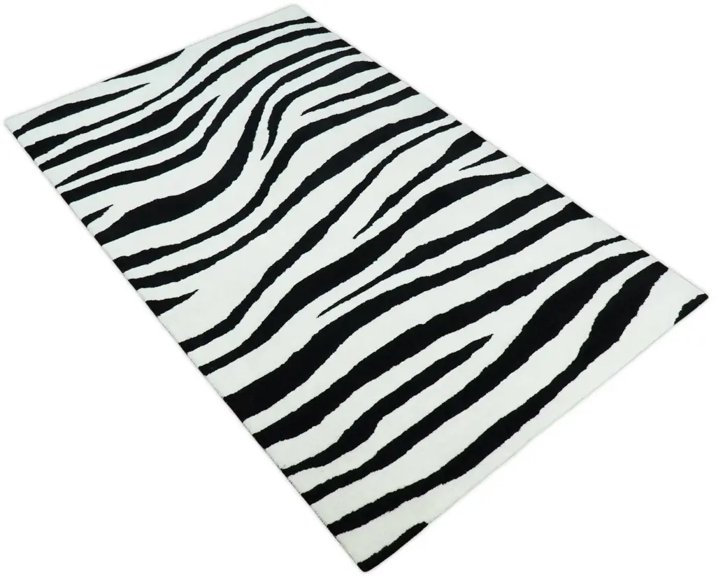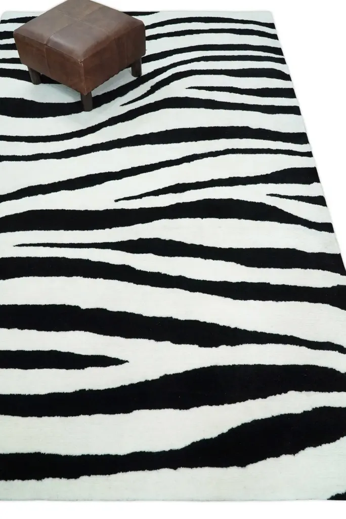 Antelope Rug, Hand Tufted Black And White Zebra Area Rug, Modern Wool Area Rug | Ani1 - 4X6