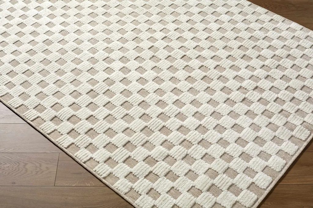 Collection: Anthea Colors: White, Light Gray Construction: Machine Woven Material: Face: 70% Polypropylene, 30% Chenille-Polyester Pile: Medium Pile Pile Height: 0.31" Styles: Contemporary Machine Washable: Yes Made In: Turkey Thickness: 0.35" Price Range: $$$$$ (Most Affordable)