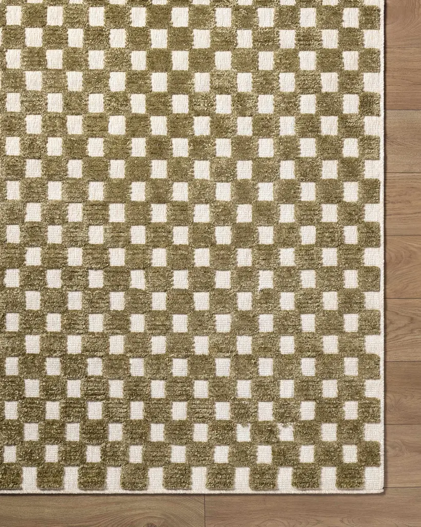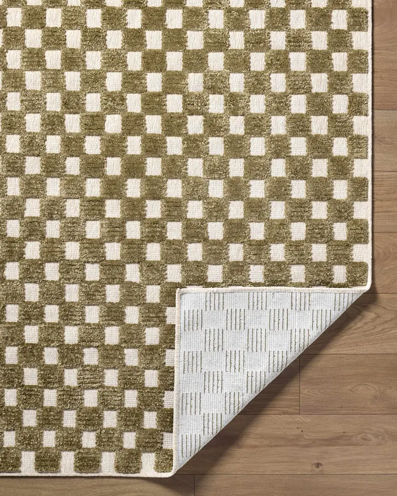 Collection: Anthea Colors: Olive, White Construction: Machine Woven Material: Face: 70% Polypropylene, 30% Chenille-Polyester Pile: Medium Pile Pile Height: 0.31" Styles: Contemporary Machine Washable: Yes Made In: Turkey Thickness: 0.35" Price Range: $$$$$ (Most Affordable)