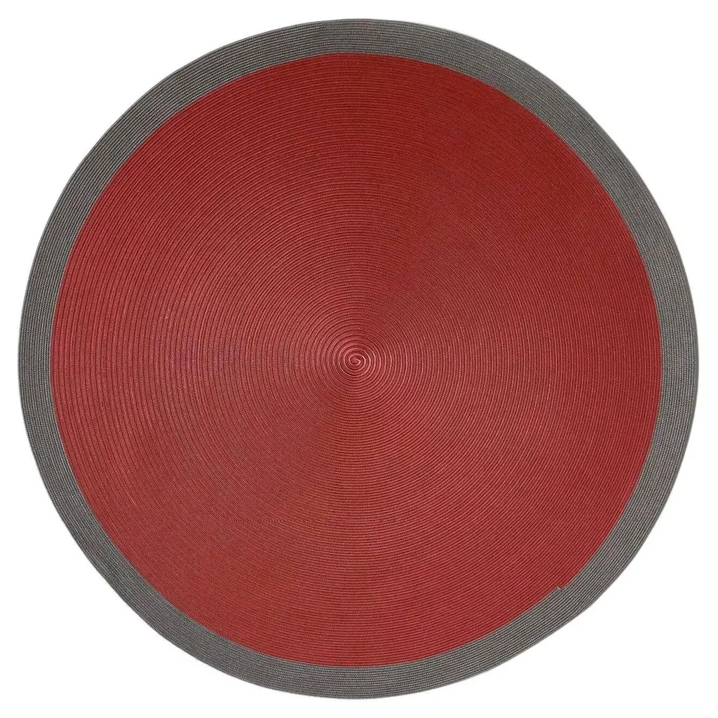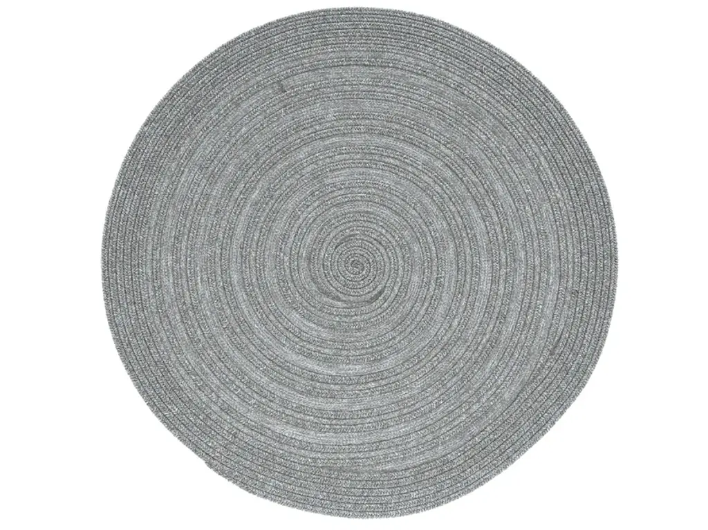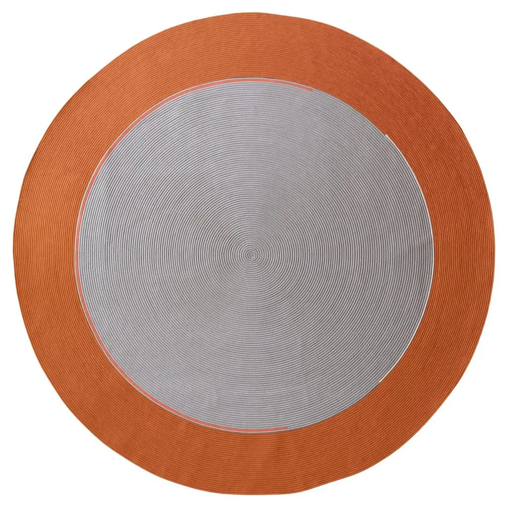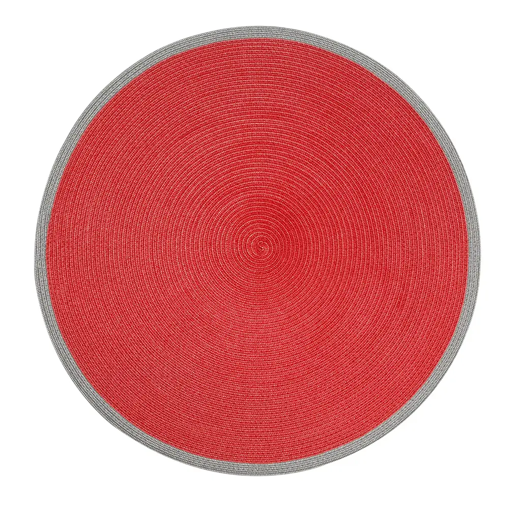 Antibes is a round hand-made rug in ‘w-proof’® synthetic fibre.Antibes is made by combining 3 different flat cords and straps in synthetic yarn. The edge is sewn, in fabric of the same yarn.ColoursAT|05 (melange canvas)AT|06 (melange dark grey)AT|07 (melange light green)AT|08 (melange aqua)AT|09 (melange silver)AT|10 (melange terracotta)Technical informationQuality: Hand-sewn. 'w-proof' synthetic fibre, resistant to UV rays and bad weather.Thickness: approx. 10 mmWeight: approx. 2 Kg/m2The configuration (size + color) must be completed to obtain the final price of the product.‘Plein Sud’ is a line of carpets for the residential and the ‘Contract’ outdoor, combining comfort and elegance, design experience and excellent raw materials. It ‘a collection of innovative products for the outdoor environment designed with the same comforts of home interiors, for the pleasure of living in beautiful surroundings. Thanks to the finish of the mélange yarn, with elegant shades and edged in different colours, the collection Plein Sud becomes a quality complement both for outdoor and indoor spaces. The carpets are made on hand looms with a synthetic fiber. The particular process that combines the plots of the frame to the manual applications, gives these products the thickness, the quality and the elegance of indoor carpets. The yarn is perfectly suitable for outdoor environments thanks to its durability and its resistance to atmospheric agents. All the models of the collection ‘Plein Sud’ have a high UV stability, are water repellent and can be stain-proof and anti-mold treated. Carpets can also be custom made, after consultation with our technical department. Plein Sud is 100% ‘renewable design’