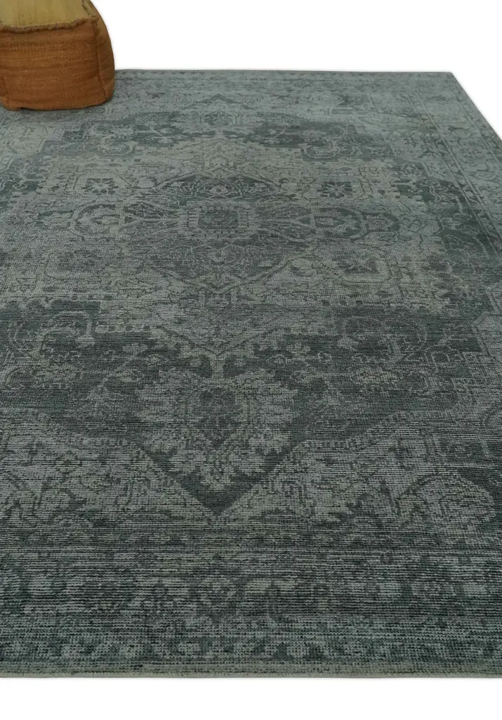 This premium custom made wool rug is perfect for any traditional space. Featuring an antique floral design in charcoal and silver, this Heriz medallion rug will lend a timeless, classic appeal. Expertly crafted for maximum durability, this area rug is sure to last for years to come. Hand-Knotted Made with Wool Made to Order in 30-45 Days Color : Charcoal and Silver This specific rug is made in India, in the city of Bhadohi. Bhadohi is one of the biggest rug manufacturing cities. Carpet weaving in the region dates back to the 16th century during the reign of Akbar. The skilled artisans of Bhadohi have been carrying the tradition of rug-making for centuries. USERS GUIDE Avoid prolonged moisture Vacuum regularly and/or shake to remove dust Do not pull any loose threads. Use scissors to simply cut the ends Blot spills immediately with a white cloth. Harsh chemicals may damage or fade the rug Use rug protectors under heavy furniture