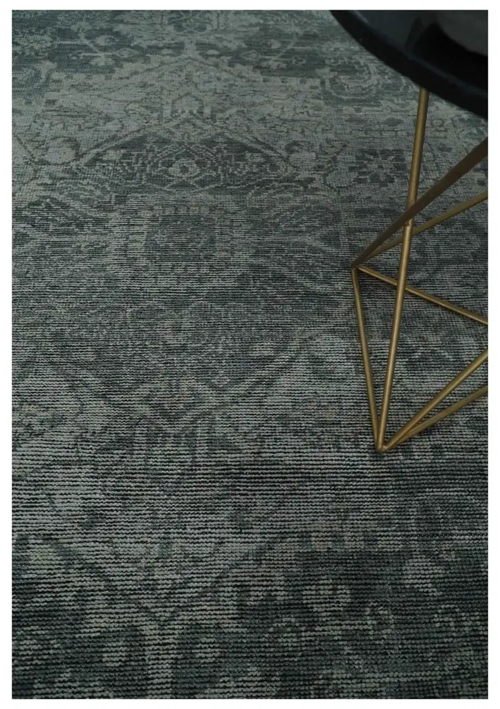This premium custom made wool rug is perfect for any traditional space. Featuring an antique floral design in charcoal and silver, this Heriz medallion rug will lend a timeless, classic appeal. Expertly crafted for maximum durability, this area rug is sure to last for years to come. Hand-Knotted Made with Wool Made to Order in 30-45 Days Color : Charcoal and Silver This specific rug is made in India, in the city of Bhadohi. Bhadohi is one of the biggest rug manufacturing cities. Carpet weaving in the region dates back to the 16th century during the reign of Akbar. The skilled artisans of Bhadohi have been carrying the tradition of rug-making for centuries. USERS GUIDE Avoid prolonged moisture Vacuum regularly and/or shake to remove dust Do not pull any loose threads. Use scissors to simply cut the ends Blot spills immediately with a white cloth. Harsh chemicals may damage or fade the rug Use rug protectors under heavy furniture