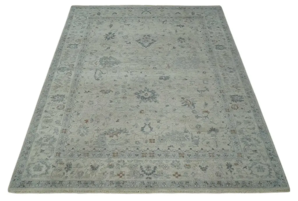 This Antique Look Beige and Charcoal distressed finished Low Pile Multi Size Oushak wool Area Rug is perfect for injecting a vintage look into your home. Crafted with high quality wool, this rug is designed with a distressed finish for a classic yet edgy look. The low pile and varied sizes make it perfect for any space. Hand-Knotted SIZES ARE MADE TO ORDER IN 45-60 DAYS Made with Wool Color : Beige and Charcoal Made with 50 knots per square inch This specific rug is made in India, in the city of Bhadohi. Bhadohi is one of the biggest rug manufacturing cities. Carpet weaving in the region dates back to the 16th century during the reign of Akbar. The skilled artisans of Bhadohi have been carrying the tradition of rug-making for centuries. USERS GUIDE Avoid prolonged moisture Vacuum regularly and/or shake to remove dust Do not pull any loose threads. Use scissors to simply cut the ends The blot spills immediately with a white cloth. Harsh chemicals may damage or fade the rug Use rug protectors under heavy furniture