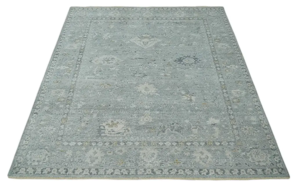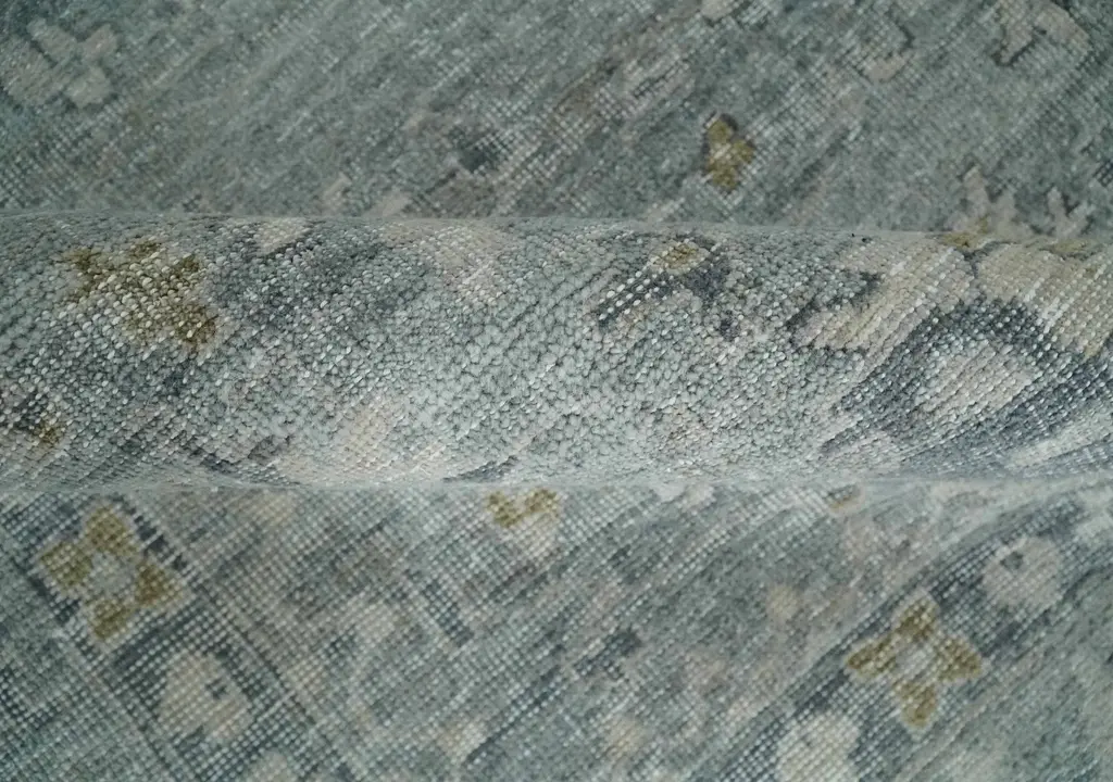 This Antique Look Gray and Silver distressed finished Low Pile Multi Size Oushak wool Area Rug is perfect for injecting a vintage look into your home. Crafted with high quality wool, this rug is designed with a distressed finish for a classic yet edgy look. The low pile and varied sizes make it perfect for any space. Hand-Knotted SIZES ARE MADE TO ORDER IN 45-60 DAYS Made with Wool Color : Gray and Silver Made with 50 knots per square inch This specific rug is made in India, in the city of Bhadohi. Bhadohi is one of the biggest rug manufacturing cities. Carpet weaving in the region dates back to the 16th century during the reign of Akbar. The skilled artisans of Bhadohi have been carrying the tradition of rug-making for centuries. USERS GUIDE Avoid prolonged moisture Vacuum regularly and/or shake to remove dust Do not pull any loose threads. Use scissors to simply cut the ends The blot spills immediately with a white cloth. Harsh chemicals may damage or fade the rug Use rug protectors under heavy furniture