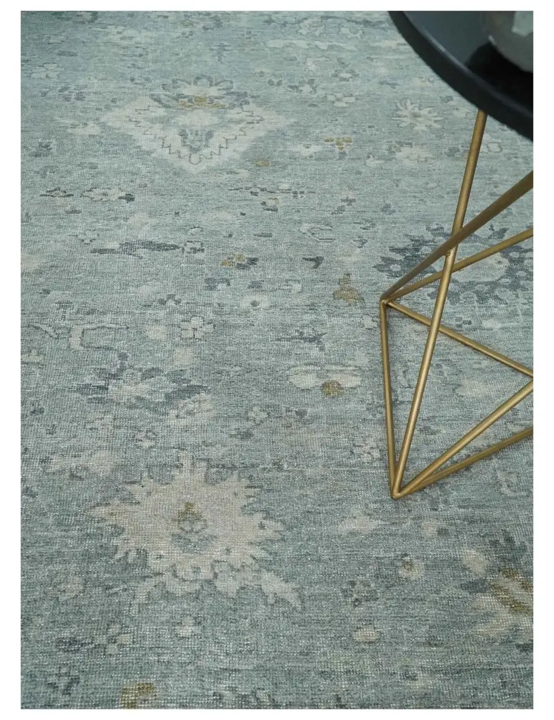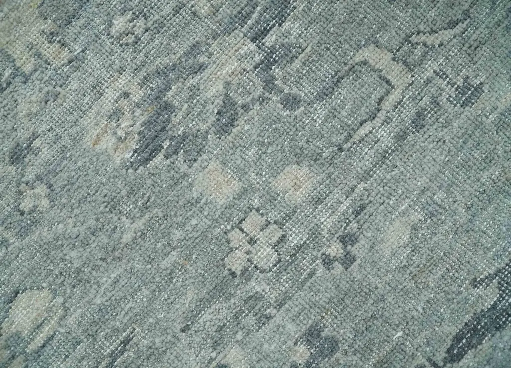 This Antique Look Gray and Silver distressed finished Low Pile Multi Size Oushak wool Area Rug is perfect for injecting a vintage look into your home. Crafted with high quality wool, this rug is designed with a distressed finish for a classic yet edgy look. The low pile and varied sizes make it perfect for any space. Hand-Knotted SIZES ARE MADE TO ORDER IN 45-60 DAYS Made with Wool Color : Gray and Silver Made with 50 knots per square inch This specific rug is made in India, in the city of Bhadohi. Bhadohi is one of the biggest rug manufacturing cities. Carpet weaving in the region dates back to the 16th century during the reign of Akbar. The skilled artisans of Bhadohi have been carrying the tradition of rug-making for centuries. USERS GUIDE Avoid prolonged moisture Vacuum regularly and/or shake to remove dust Do not pull any loose threads. Use scissors to simply cut the ends The blot spills immediately with a white cloth. Harsh chemicals may damage or fade the rug Use rug protectors under heavy furniture