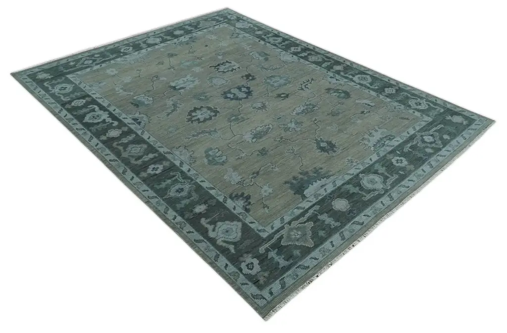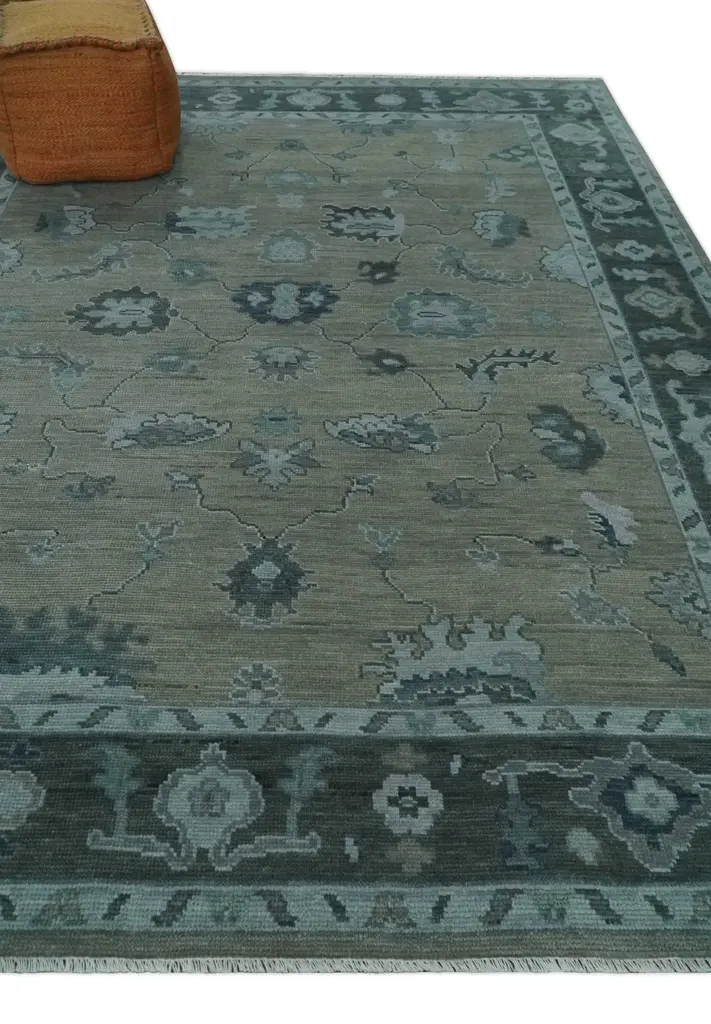 This stunning Antique Hand Knotted Area Rug features a traditional Oushak weave in intricate beige, charcoal and silver tones. Crafted with high grade wool, this timeless piece will bring an elegant touch to any space. Hand-Knotted SIZES ARE MADE TO ORDER IN 30-60 DAYS Made with Wool Color : Beige, Charcoal, and Silver Made with 28 knots per square inch This specific rug is made in India, in the city of Bhadohi. Bhadohi is one of the biggest rug manufacturing cities. Carpet weaving in the region dates back to the 16th century during the reign of Akbar. The skilled artisans of Bhadohi have been carrying the tradition of rug-making for centuries. USERS GUIDE Avoid prolonged moisture Vacuum regularly and/or shake to remove dust Do not pull any loose threads. Use scissors to simply cut the ends The blot spills immediately with a white cloth. Harsh chemicals may damage or fade the rug Use rug protectors under heavy furniture