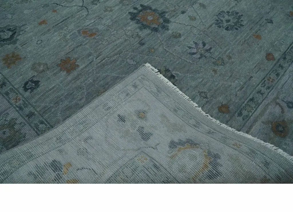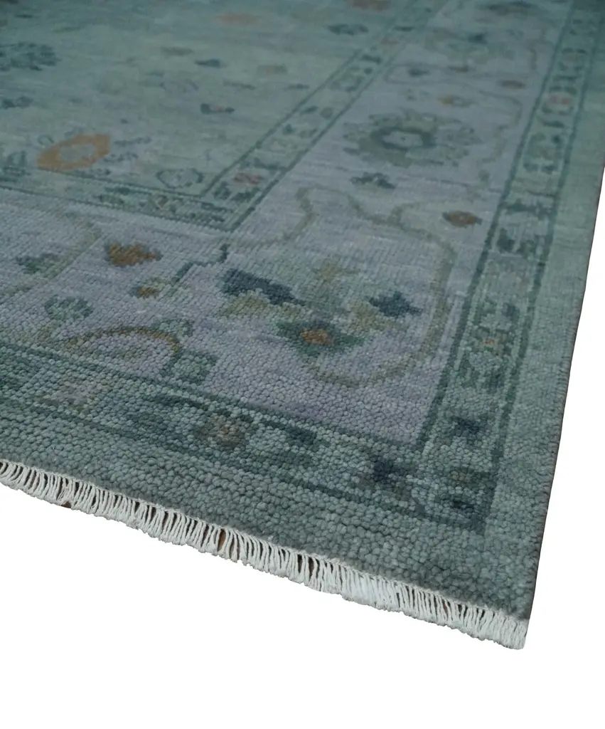 This Antique Hand Knotted area rug is crafted from the finest wool in a traditional Oushak design. Charcoal and silver colors create a timeless look that will complement any room. The rug is hand-knotted to ensure highest quality and durability. Hand-Knotted ALL SIZES ARE MADE TO ORDER IN 30-45 DAYS Made with Wool Color : Charcoal and Gray Made with 28 knots per square inch This specific rug is made in India, in the city of Bhadohi. Bhadohi is one of the biggest rug manufacturing cities. Carpet weaving in the region dates back to the 16th century during the reign of Akbar. The skilled artisans of Bhadohi have been carrying the tradition of rug-making for centuries. USERS GUIDE Avoid prolonged moisture Vacuum regularly and/or shake to remove dust Do not pull any loose threads. Use scissors to simply cut the ends The blot spills immediately with a white cloth. Harsh chemicals may damage or fade the rug Use rug protectors under heavy furniture