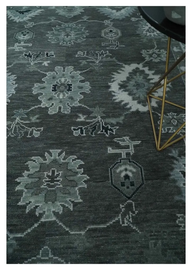 This Antique Hand Knotted Charcoal and Ivory Traditional Oushak wool area rug will bring elegance and timeless style to your home decor. Expertly hand-knotted by Turkish artisans to exacting standards, this exquisite rug is made from the finest wool that is durable and easy to clean. With its unique pattern and color combinations, it will add an air of sophistication to any room. Hand-Knotted SIZES ARE MADE TO ORDER IN 30-45 DAYS Made with Wool Color : Charcoal and Ivory Made with 28 knots per square inch This specific rug is made in India, in the city of Bhadohi. Bhadohi is one of the biggest rug manufacturing cities. Carpet weaving in the region dates back to the 16th century during the reign of Akbar. The skilled artisans of Bhadohi have been carrying the tradition of rug-making for centuries. USERS GUIDE Avoid prolonged moisture Vacuum regularly and/or shake to remove dust Do not pull any loose threads. Use scissors to simply cut the ends The blot spills immediately with a white cloth. Harsh chemicals may damage or fade the rug Use rug protectors under heavy furniture