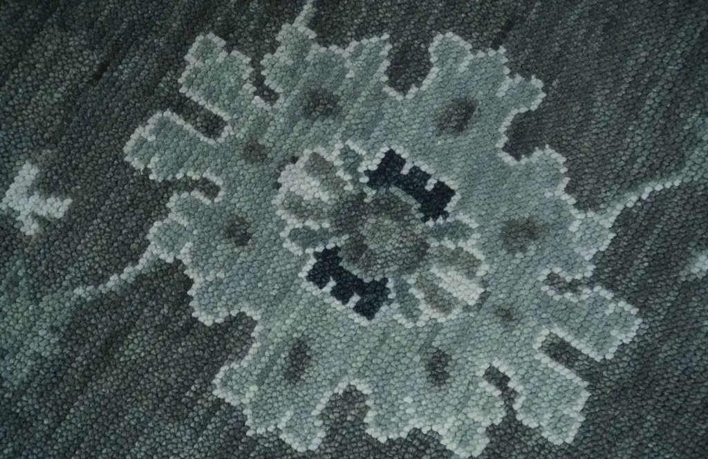 This Antique Hand Knotted Charcoal and Ivory Traditional Oushak wool area rug will bring elegance and timeless style to your home decor. Expertly hand-knotted by Turkish artisans to exacting standards, this exquisite rug is made from the finest wool that is durable and easy to clean. With its unique pattern and color combinations, it will add an air of sophistication to any room. Hand-Knotted SIZES ARE MADE TO ORDER IN 30-45 DAYS Made with Wool Color : Charcoal and Ivory Made with 28 knots per square inch This specific rug is made in India, in the city of Bhadohi. Bhadohi is one of the biggest rug manufacturing cities. Carpet weaving in the region dates back to the 16th century during the reign of Akbar. The skilled artisans of Bhadohi have been carrying the tradition of rug-making for centuries. USERS GUIDE Avoid prolonged moisture Vacuum regularly and/or shake to remove dust Do not pull any loose threads. Use scissors to simply cut the ends The blot spills immediately with a white cloth. Harsh chemicals may damage or fade the rug Use rug protectors under heavy furniture