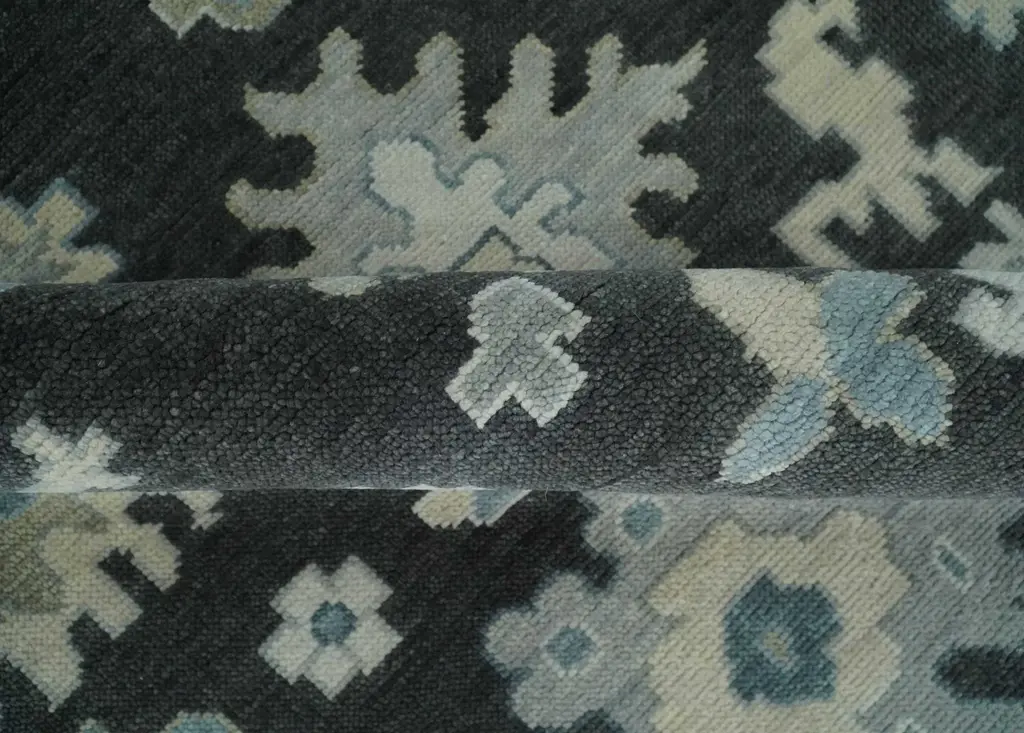 Antique Look Black, Beige And Silver Hand Knotted Traditional Oushak Multi Size Wool Area Rug - 2.6x11