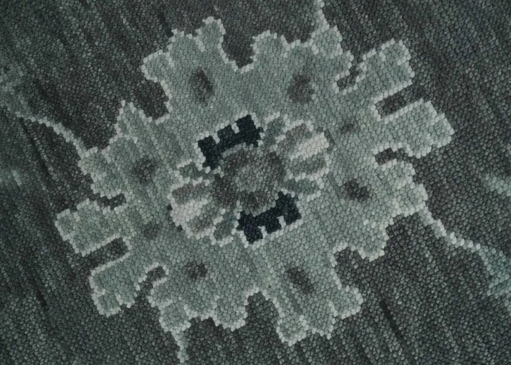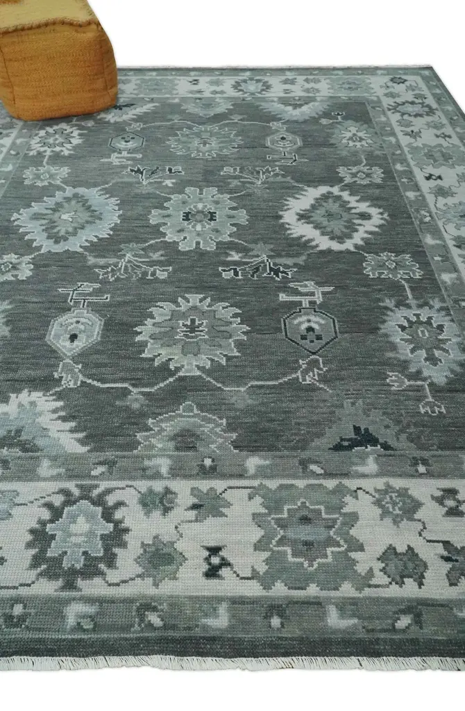 This Antique look Charcoal, Ivory and Silver Hand knotted Traditional Oushak Custom Made wool Area Rug is a timeless piece with classic elegance. Designed with precision and care, the luxurious wool material and traditional Oushak pattern will be a perfect addition to any room's atmosphere. Hand-Knotted Made with Wool Made to Order in 30-45 Days Color : Charcoal, Ivory and Silver This specific rug is made in India, in the city of Bhadohi. Bhadohi is one of the biggest rug manufacturing cities. Carpet weaving in the region dates back to the 16th century during the reign of Akbar. The skilled artisans of Bhadohi have been carrying the tradition of rug-making for centuries. USERS GUIDE Avoid prolonged moisture Vacuum regularly and/or shake to remove dust Do not pull any loose threads. Use scissors to simply cut the ends Blot spills immediately with a white cloth. Harsh chemicals may damage or fade the rug Use rug protectors under heavy furniture