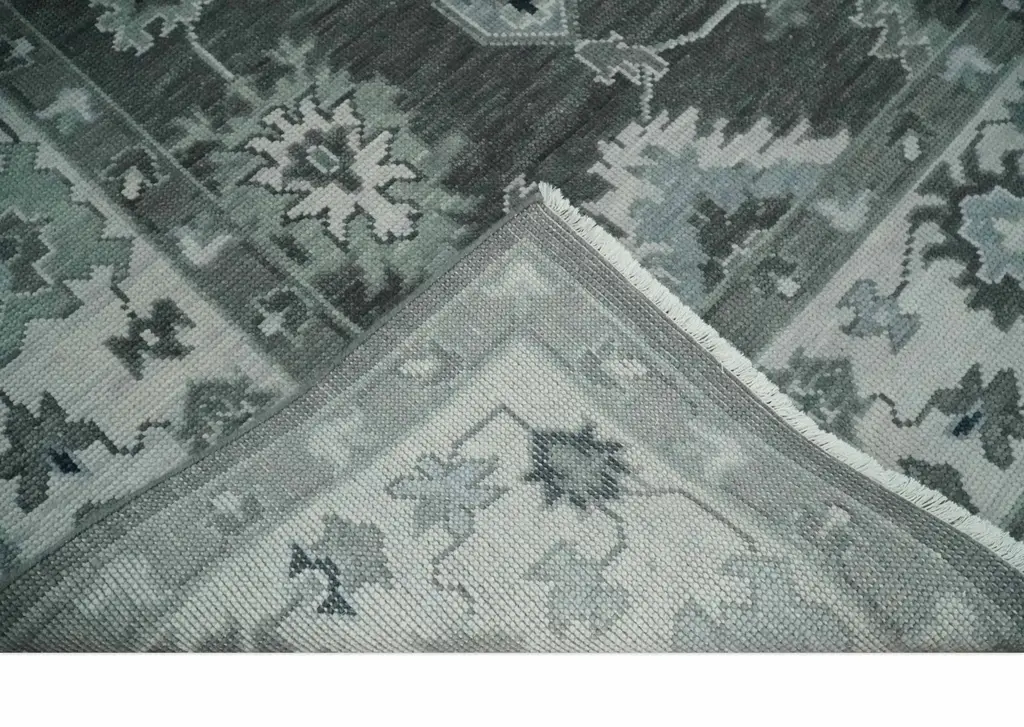 This Antique look Charcoal, Ivory and Silver Hand knotted Traditional Oushak Custom Made wool Area Rug is a timeless piece with classic elegance. Designed with precision and care, the luxurious wool material and traditional Oushak pattern will be a perfect addition to any room's atmosphere. Hand-Knotted Made with Wool Made to Order in 30-45 Days Color : Charcoal, Ivory and Silver This specific rug is made in India, in the city of Bhadohi. Bhadohi is one of the biggest rug manufacturing cities. Carpet weaving in the region dates back to the 16th century during the reign of Akbar. The skilled artisans of Bhadohi have been carrying the tradition of rug-making for centuries. USERS GUIDE Avoid prolonged moisture Vacuum regularly and/or shake to remove dust Do not pull any loose threads. Use scissors to simply cut the ends Blot spills immediately with a white cloth. Harsh chemicals may damage or fade the rug Use rug protectors under heavy furniture