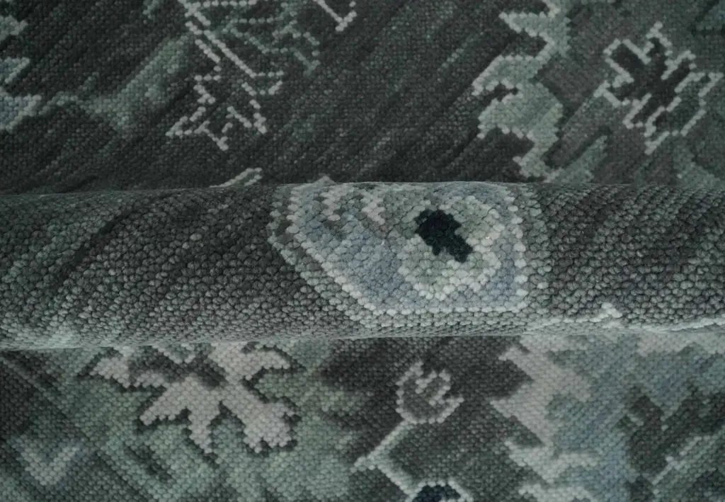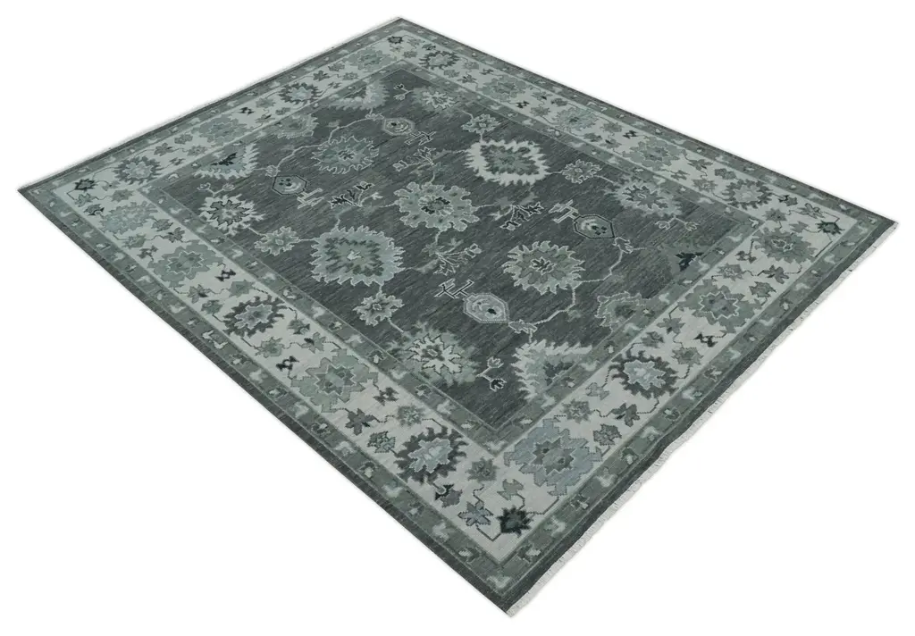 This Antique look Charcoal, Ivory and Silver Hand knotted Traditional Oushak Custom Made wool Area Rug is a timeless piece with classic elegance. Designed with precision and care, the luxurious wool material and traditional Oushak pattern will be a perfect addition to any room's atmosphere. Hand-Knotted Made with Wool Made to Order in 30-45 Days Color : Charcoal, Ivory and Silver This specific rug is made in India, in the city of Bhadohi. Bhadohi is one of the biggest rug manufacturing cities. Carpet weaving in the region dates back to the 16th century during the reign of Akbar. The skilled artisans of Bhadohi have been carrying the tradition of rug-making for centuries. USERS GUIDE Avoid prolonged moisture Vacuum regularly and/or shake to remove dust Do not pull any loose threads. Use scissors to simply cut the ends Blot spills immediately with a white cloth. Harsh chemicals may damage or fade the rug Use rug protectors under heavy furniture