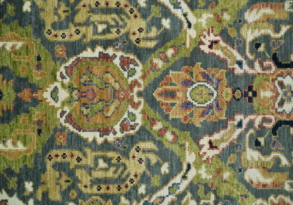 This Hand-Knotted Rug has been Made with Handspun Wool. The beautiful colors and design of the rug carry a legacy of Oushak rugs. The large design of the rug completes your space without making it look busy. The rug is durable and can last for decades if treated right. Hand-Knotted ALL SIZES ARE MADE TO ORDER IN 30-45 DAYS Made with Soft Wool Color: Green, Ivory and Gray Made with 22 knots per square inch This specific rug is made in India, in the city of Bhadohi. Bhadohi is one of the biggest rug manufacturing cities. Carpet weaving in the region dates back to the 16th century during the reign of Akbar. The skilled artisans of Bhadohi have been carrying the tradition of rug-making for centuries. USERS GUIDE Avoid prolonged moisture Vacuum regularly and/or shake to remove dust Do not pull any loose threads. Use scissors to simply cut the ends Blot spills immediately with a white cloth. Harsh chemicals may damage or fade the rug Use rug protectors under heavy furniture