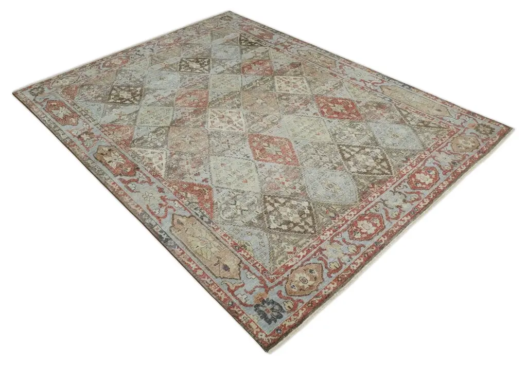 This Hand-Knotted Rug has been Made with Handspun Wool. The beautiful colors of the rug carry a legacy of the famous Persian Garden rug, the traditional design of the rug completes your space without making it look busy. Hand Knotted rugs are durable and can last for decades if treated right. Hand-Knotted SIZES ARE MADE TO ORDER IN 30-60 DAYS Made with Wool Color: Rust, Brown, Ivory, and Blue Oushak rugs originate from the city of Oushak in the province of East Azerbaijan in North West Iran. Oushak rugs have been made for centuries and carry a tradition and art. This specific rug is made in India, in the city of Bhadohi. Bhadohi is one of the biggest rug manufacturing cities. Carpet weaving in the region dates back to the 16th century during the reign of Akbar. The skilled artisans of Bhadohi have been carrying the tradition of rug-making for centuries. USERS GUIDE Avoid prolonged moisture Vacuum regularly and/or shake to remove dust Do not pull any loose threads. Use scissors to simply cut the ends The blot spills immediately with a white cloth. Harsh chemicals may damage or fade the rug Use rug protectors under heavy furniture