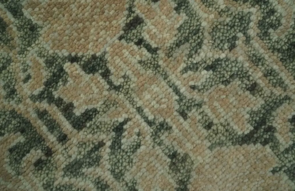 This hand-knotted wool rug boasts an antique look with a vintage style, featuring a unique blend of green, beige, and brown tones. Its multi-size design offers versatility and is perfect for adding warmth and texture to any space. Crafted with quality in mind, this rug is a timeless addition to any home. Hand-Knotted Made with Wool Made to Order in 30-45 Days Color: Green, Beige and Brown Made with 22 knots per Square inch USERS GUIDE Avoid prolonged moisture Vacuum regularly and/or shake to remove dust Do not pull any loose threads. Use scissors to simply cut the ends The blot spills immediately with a white cloth. Harsh chemicals may damage or fade the rug Use rug protectors under heavy furniture
