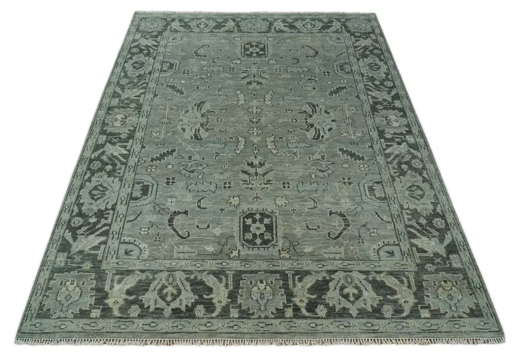 This Hand-Knotted Rug has been Made with Handspun Wool. The beautiful colors of the rug carry a legacy of the famous Heriz rug, the traditional design of the rug completes your space without making it look busy. Oushak rugs are durable and can last for decades if treated right. Hand-Knotted Rug Made with Wool Color: Silver and Charcoal Made with 22 knots per square inch ALL OTHER SIZES ARE MADE TO ORDER Oushak rugs have been made for centuries and carry a tradition and art. This specific rug is made in India, in the city of Bhadohi. Bhadohi is one of the biggest rug manufacturing cities. Carpet weaving in the region dates back to the 16th century during the reign of Akbar. The skilled artisans of Bhadohi have been carrying the tradition of rug-making for centuries. USERS GUIDE Avoid prolonged moisture Vacuum regularly and/or shake to remove dust Do not pull any loose threads. Use scissors to simply cut the ends Blot spills immediately with a white cloth. Harsh chemicals may damage or fade the rug Use rug protectors under heavy furniture